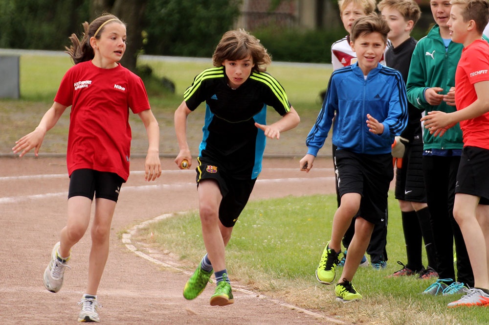 … lautete das Motto am Dienstag, 9.6., als sich die kleinen und größeren Sportler der Jahrgangsstufen 5-9 zu den Bundesjugendspielen auf dem Sportplatz trafen. Im Ringen um die persönlich besten Ergebnisse traten sie im Weitsprung, Sprint, Lauf und Wurf an. Belohnt werden wird die Leistung vieler Sportler bald mit Urkunden, langfristiger aber auch mit dem Sportabzeichen, das eine große Zahl der Loburger Schüler alljährlich erwirbt.
