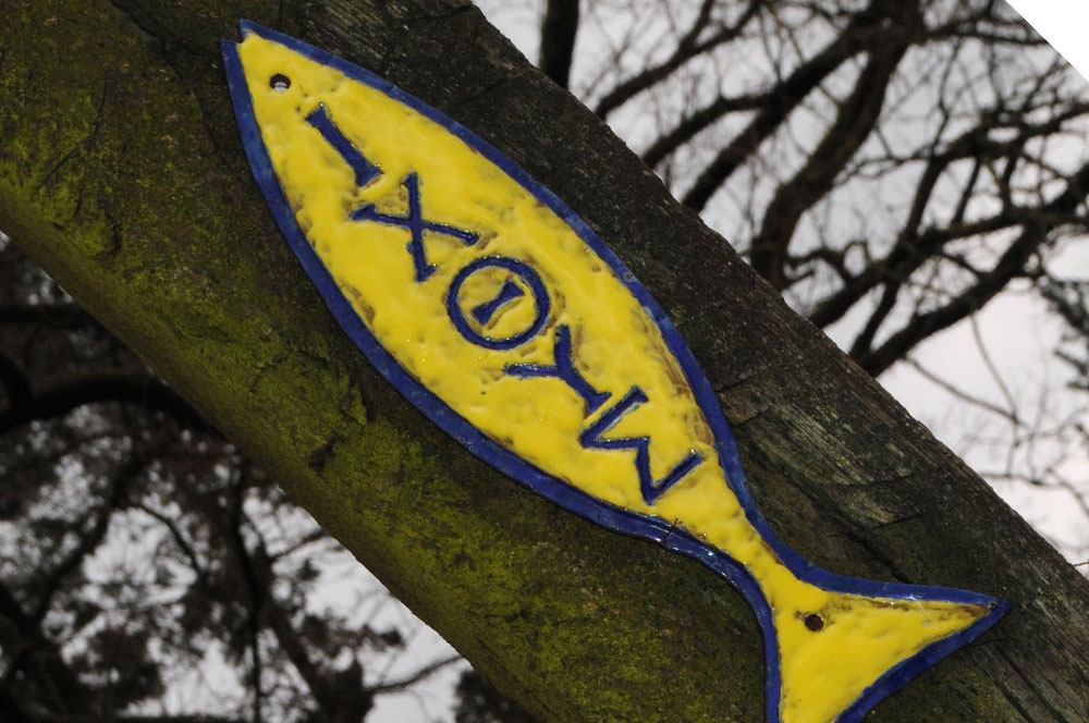 Seit der Urchristenheit ist der FISCH (das griechische Wort "ichthys" heißt "Fisch"!) das Erkennungszeichen der Christen. Vor allem unter der römischen Verfolgung wurde es zum Zeichen für die verfolgten Christen. Damals war der Fisch das "Geheimzeichen" für die Christen, weil ein offenes Bekenntnis den Tod nach sich zog! Heute ist es ein "freiwilliges Zeichen" von Christenmenschen.