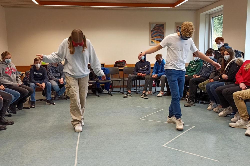 Dabei gab es neben vielen faktenorientierten Informationen vor allem auch spielerische Einheiten wie Rollenspiele oder eine sehr eindrückliche Übung mit den sogenannten „Alkoholbrillen“, die auf amüsante Weise die Folgen exzessiven Konsums erlebbar machte, sodass vor allem der eigene Umgang mit Alkohol im Mittelpunkt stand. Abgerundet wurde die Präventionsveranstaltung mit einem abwechslungsreichen Quiz und einem insgesamt sehr positiven Feedback der beteiligten Schülerinnen und Schüler sowie Hr. Flothkötter als schulischer Suchtbeauftragter.