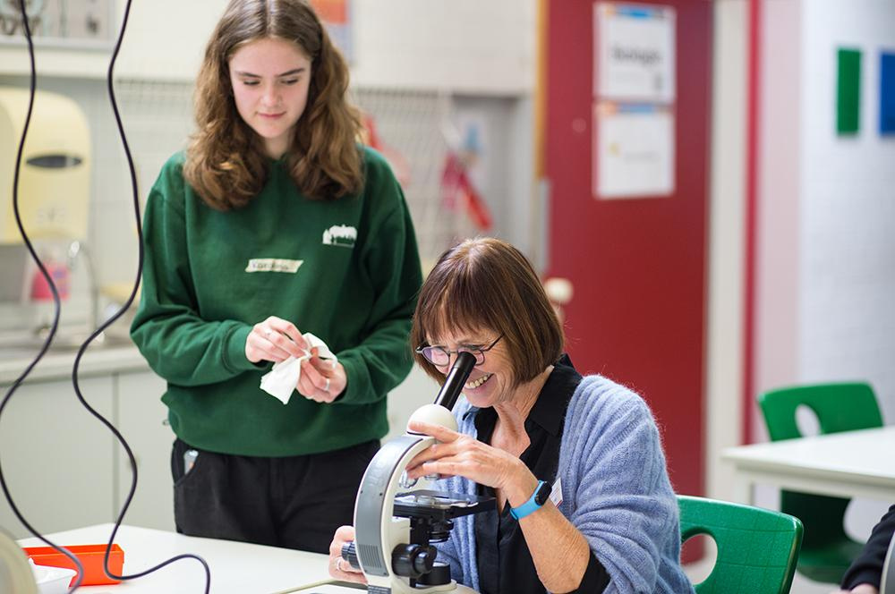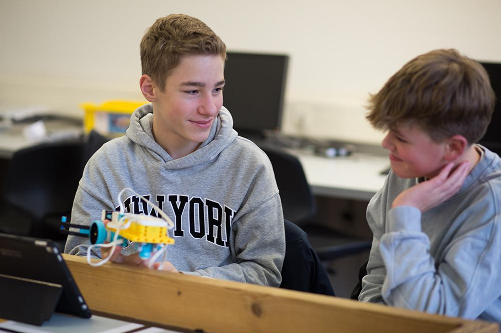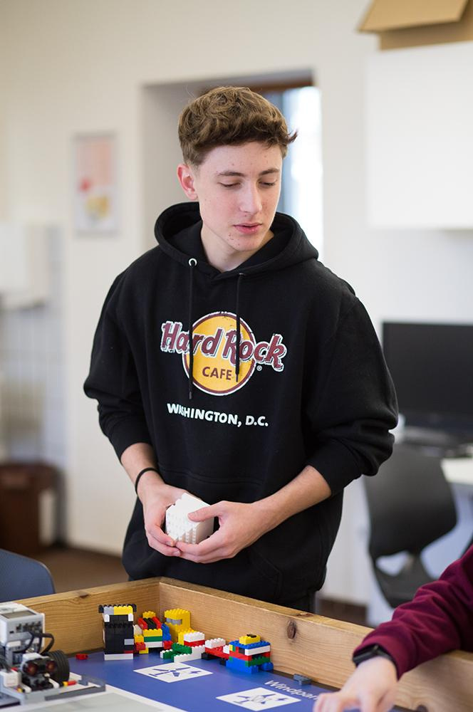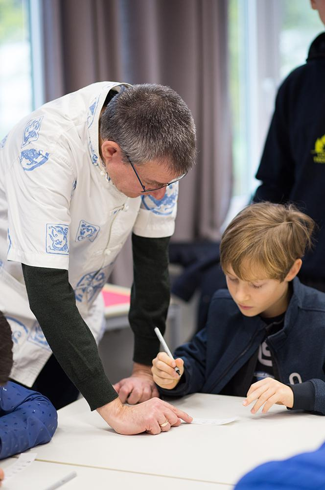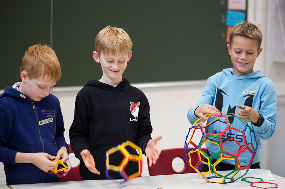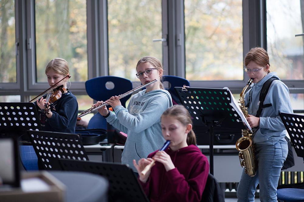 Danach gab es in der Schule vielfältige Möglichkeiten für die künftigen Gymnasiasten, selbst an Spielen teilzunehmen, in Werkstätten auszuprobieren oder auch künstlerisch tätig zu werden: In den Naturwissenschaften konnte man beispielsweise hautnah miterleben, wie interessant Biologie, Physik und Chemie sein können, in den Informatikräumen führte die Roboter-AG ihren Arbeitsstand vor, das „Ensemble Kunterbunt“ und die „Sisters“ luden mit öffentlichen Proben zum Verweilen ein, die Schach-AG zeigte ihr Können und bei Strategiespielen mit den Viertklässlern bewiesen Quintaner, dass Mathematik gar nicht so trocken sein muss, wie die meisten sich das vorstellen.