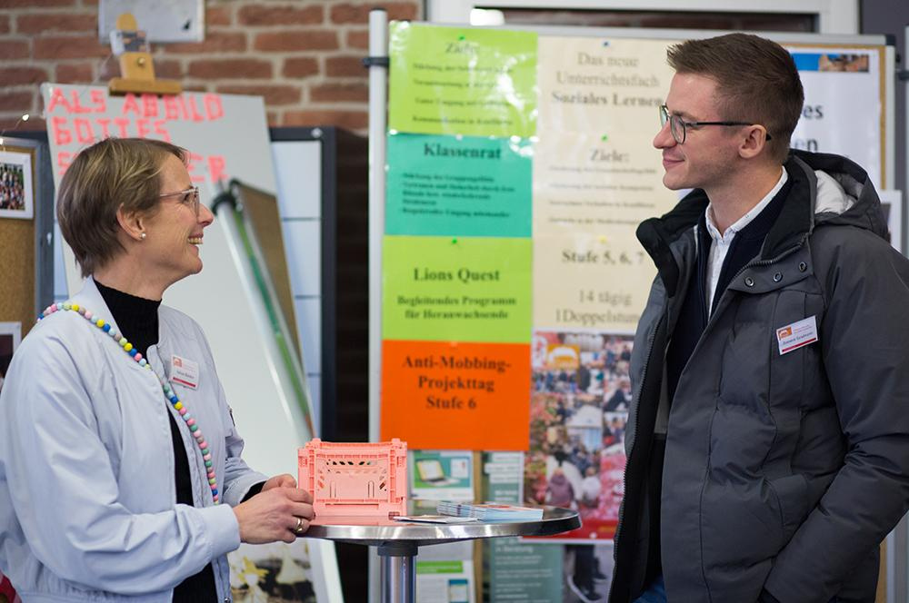 Viele Viertklässler:innen und ihre Eltern sind am 18.11. unserer Einladung gefolgt, um sich am Tag der offenen Tür die Loburg anzuschauen und sich über die Schule zu informieren. Die Familien wurden durch unsere Schulleiterin Dr. Anja Stiglic und Unterstufenkoordinator Patrik Thelen begrüßt, mit kurzen Informationen über den geplanten Ablauf ausgestattet, um dann in Kleingruppen, geführt von Kolleginnen und Kollegen, eine erste Orientierung auf dem Loburger Gelände zu bekommen.