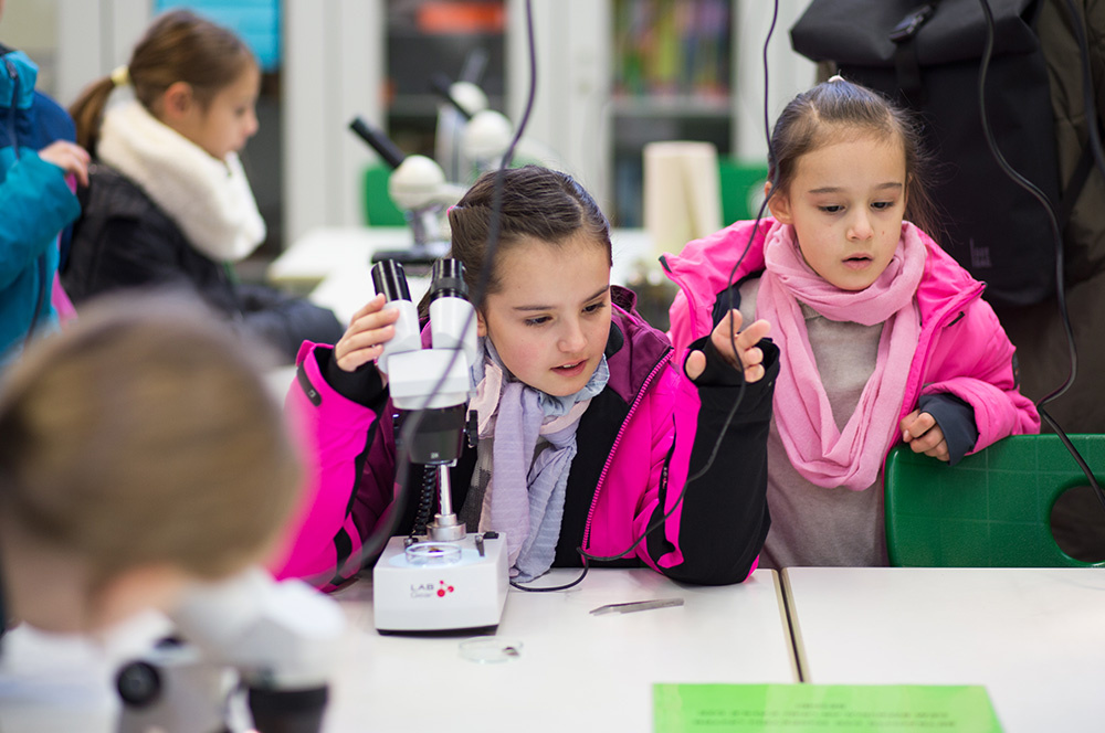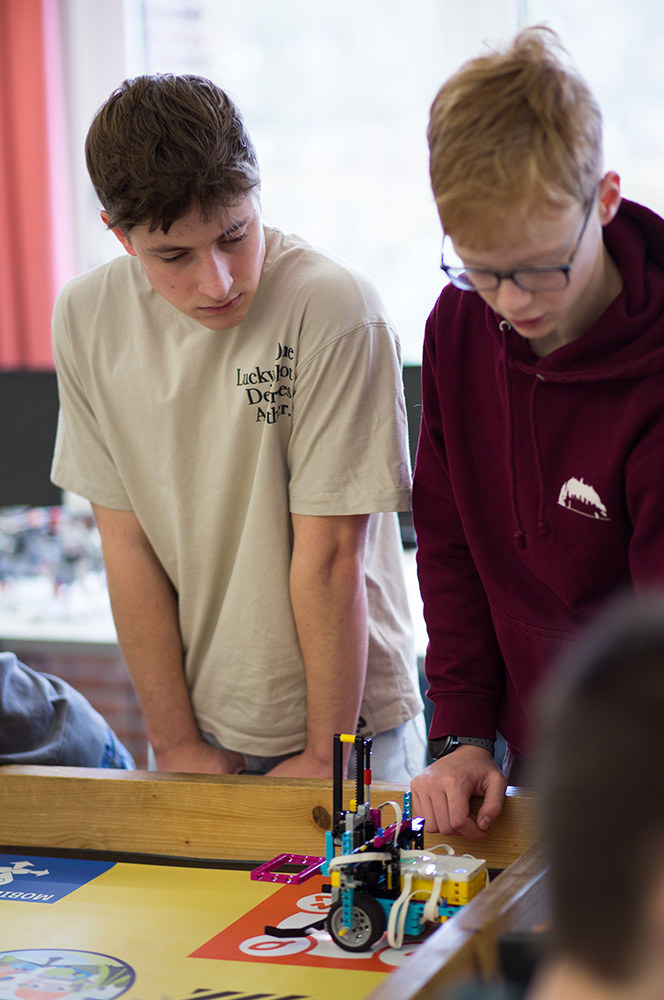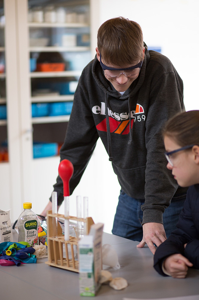 Danach gab es in der Schule vielfältige Möglichkeiten für die künftigen Gymnasiasten, selbst an Spielen teilzunehmen, in Werkstätten auszuprobieren oder auch künstlerisch tätig zu werden: In den Naturwissenschaften konnte man beispielsweise hautnah miterleben, wie interessant Biologie, Physik und Chemie sein können, in den Informatikräumen führte die Roboter-AG ihren Arbeitsstand vor, das „Ensemble Kunterbunt“ und die „Sisters“ luden mit öffentlichen Proben zum Verweilen ein, die Schach-AG zeigte ihr Können und bei Strategiespielen mit den Viertklässlern bewiesen Quintaner, dass Mathematik gar nicht so trocken sein muss, wie die meisten sich das vorstellen.