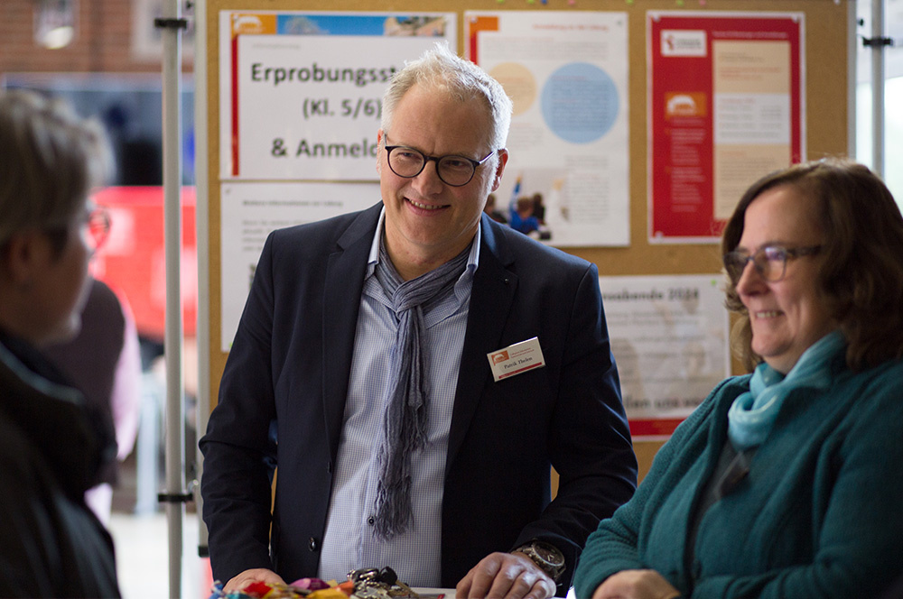 Viele ViertklässlerInnen und ihre Eltern sind am 23.11. unserer Einladung gefolgt, um sich am Tag der offenen Tür die Loburg anzuschauen und sich über die Schule zu informieren. Die Familien wurden durch unsere Schulleiterin Dr. Anja Stiglic und Unterstufenkoordinator Patrik Thelen begrüßt, mit kurzen Informationen über den geplanten Ablauf ausgestattet, um dann in Kleingruppen, geführt von Kolleginnen und Kollegen, eine erste Orientierung auf dem Loburger Gelände zu bekommen.