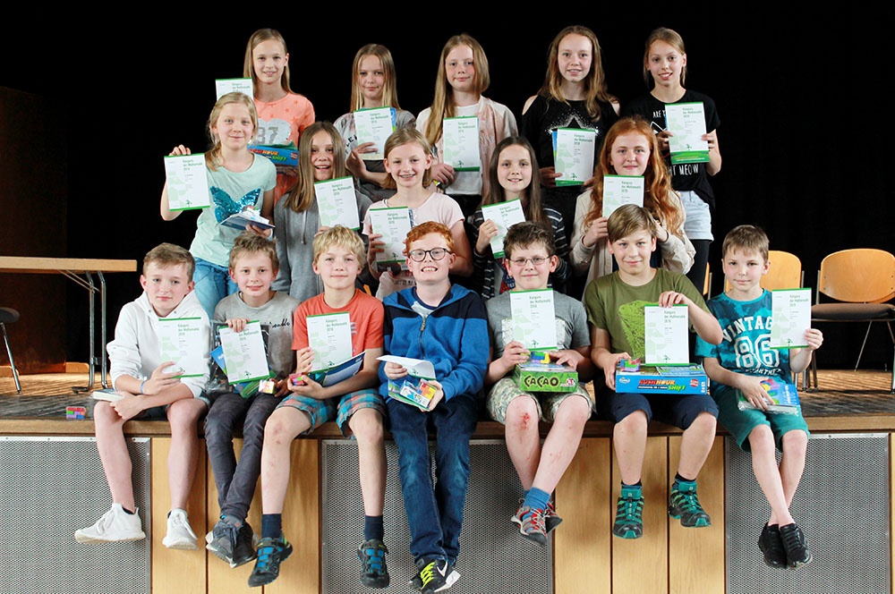 Lena Pelke, Luzie Niemerg, Romy-Zara Mittelstedt, Silas Höpke, Leif Grünkemeyer, Marten Pries, Julius Nuyken und Lisa Buckebrede aus der Jahrgangsstufe 5 erzielten einen dritten Platz. In der Jahrgangsstufe 6 konnten sich Thea Schulte im Rodde, Liana Schlee und Dana Vosskötter über einen dritten Platz freuen. Über einen zweiten Preis freuten sich Moritz Otte (Jahrgangsstufe 5) und Hanna Everwin (Jahrgangsstufe 6). Herausragende erste Plätze belegten Kirsten Akamp und Philipp Bissky aus der Jahrgangsstufe 5. In der Jahrgangsstufe 6 konnten sich Ruben Luppe und Marie Keuchel über den ersten Platz freuen. Außerdem wurde Marie Keuchel für den weitesten „Kängurusprung“ geehrt.