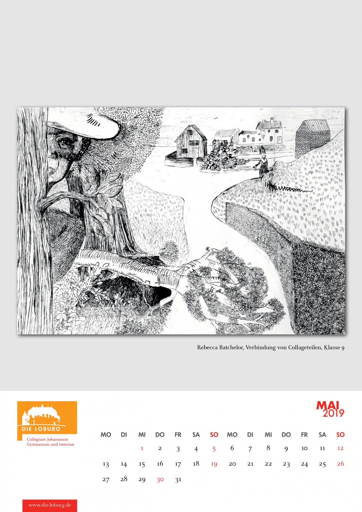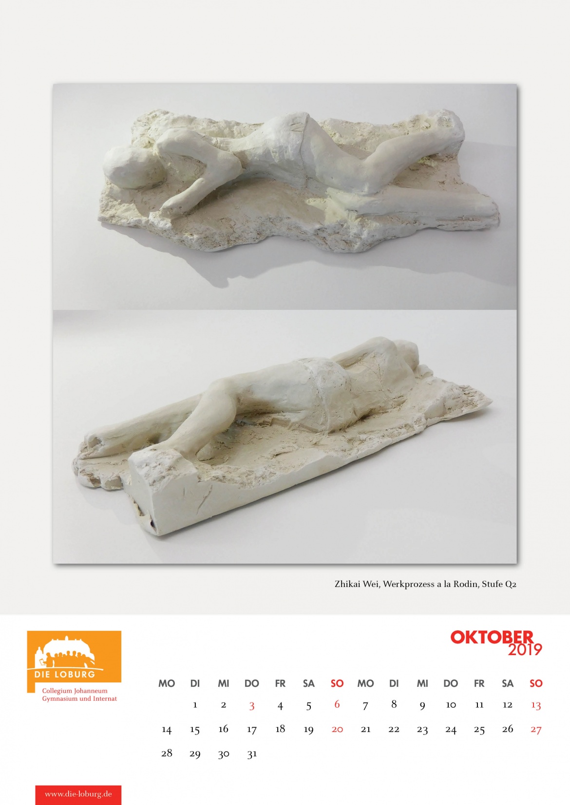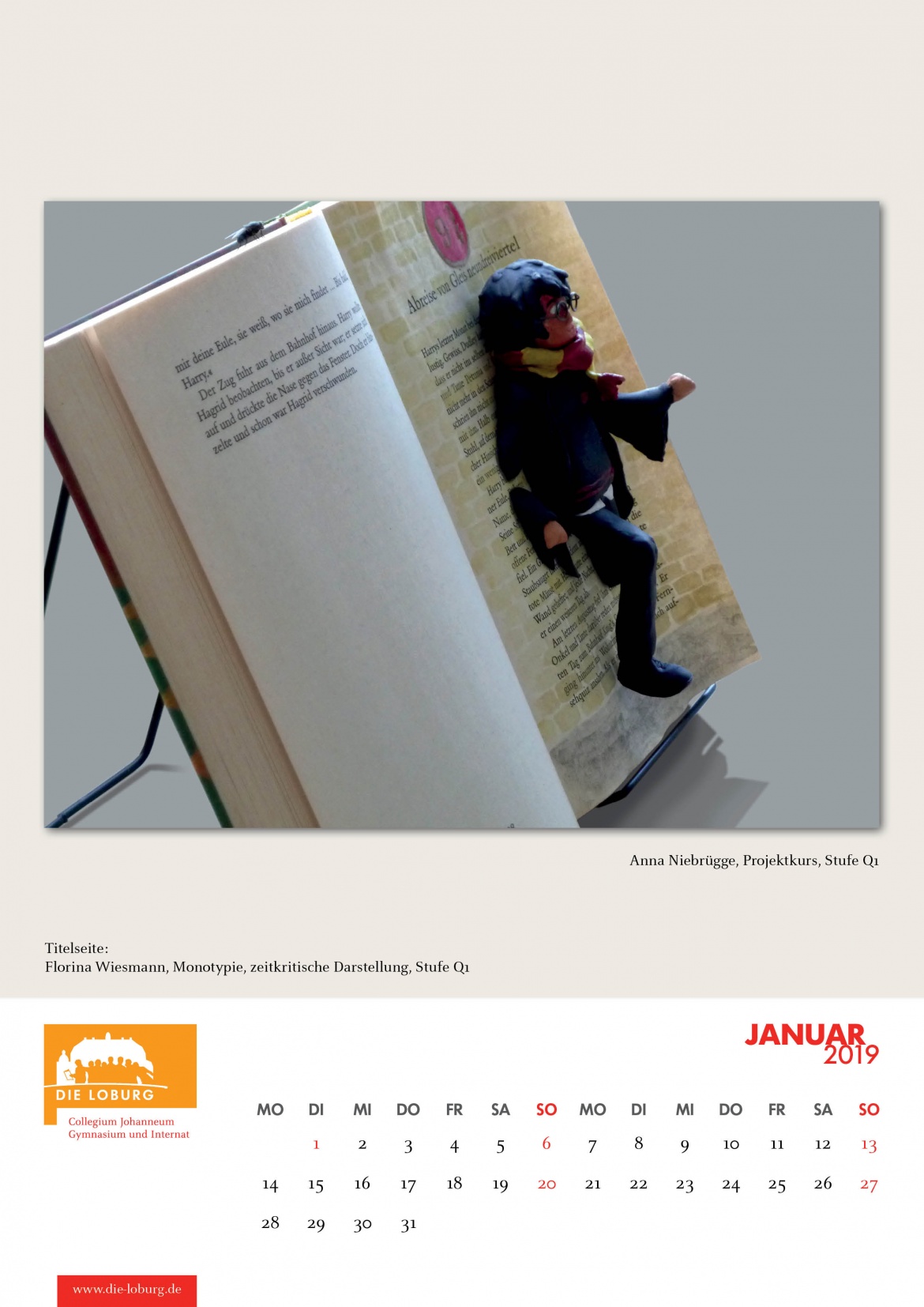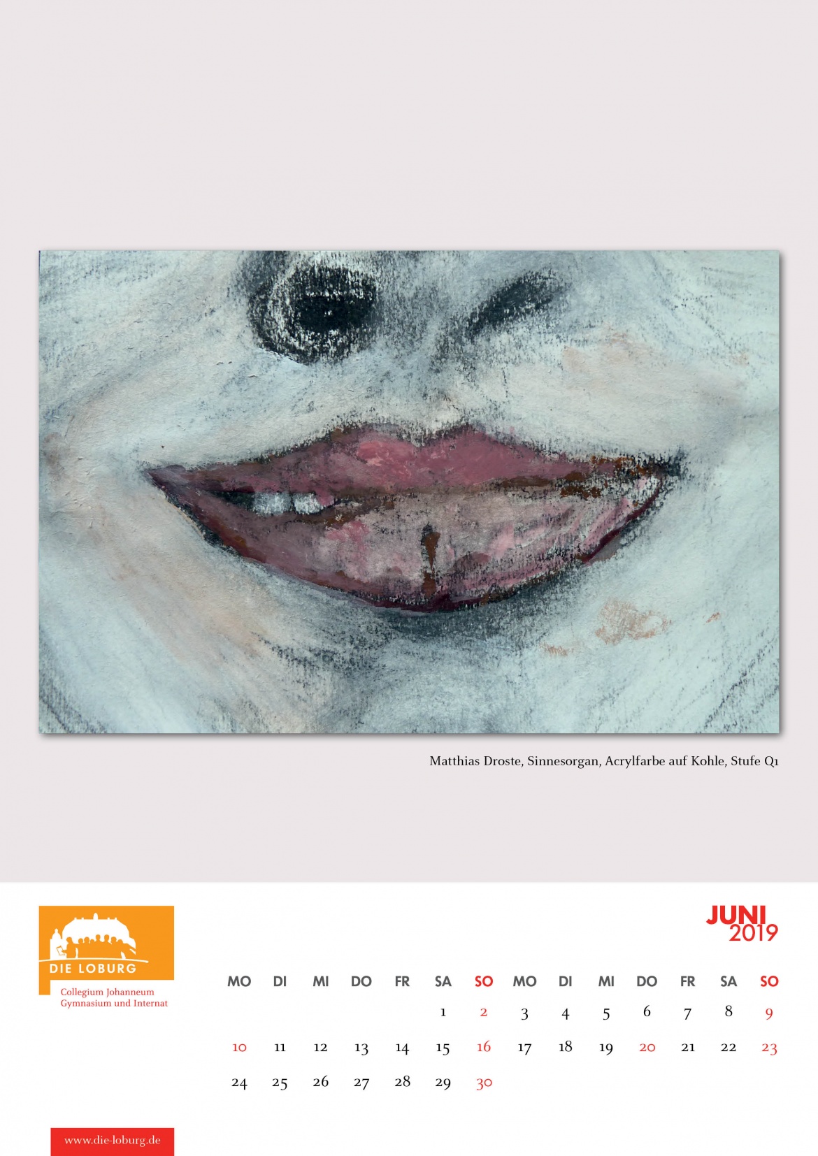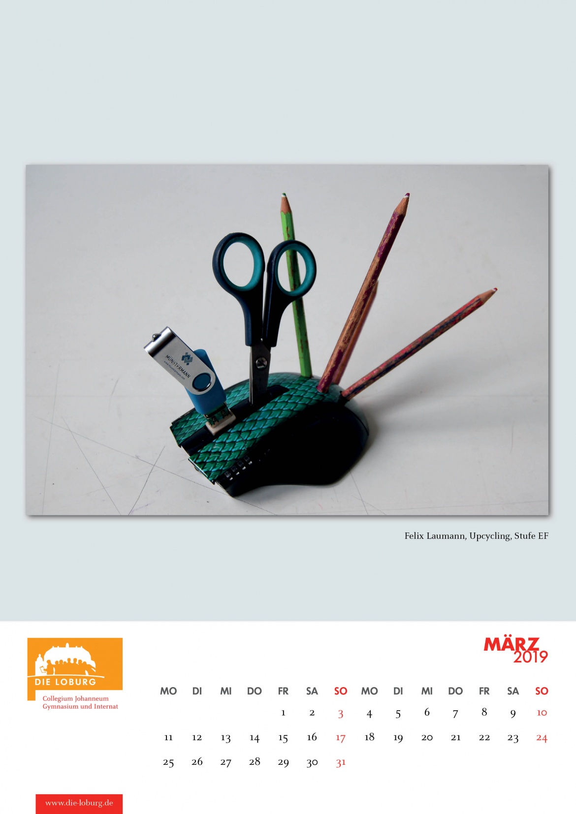 Die Fachschaft Kunst erstellt in jedem Jahr einen Kalender mit Schülerarbeiten aus dem Kunstunterricht. Hier werden aus unterschiedlichen Jahrgangsstufen ausgewählte Arbeiten gezeigt. Die Schüler zeigen ihre Werke, die in verschiedenen Techniken und mit diversen Materialien entstanden sind.