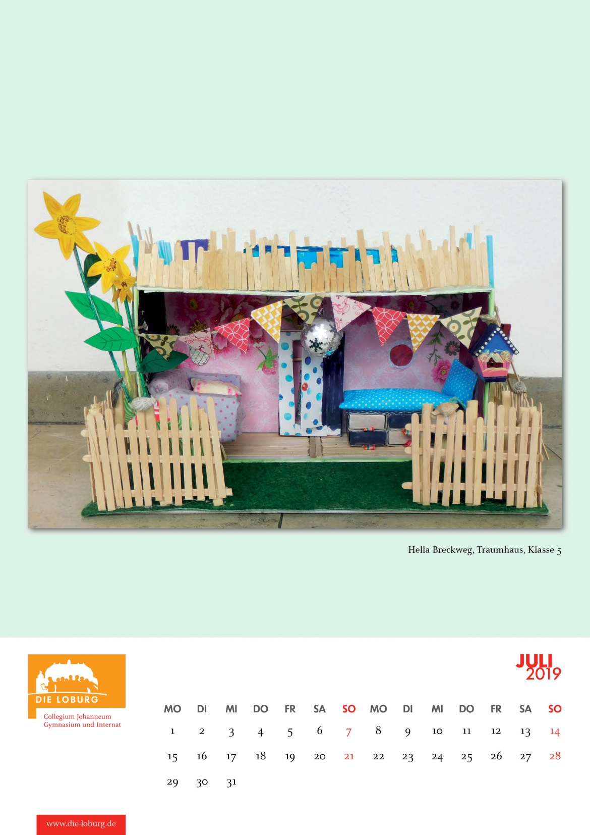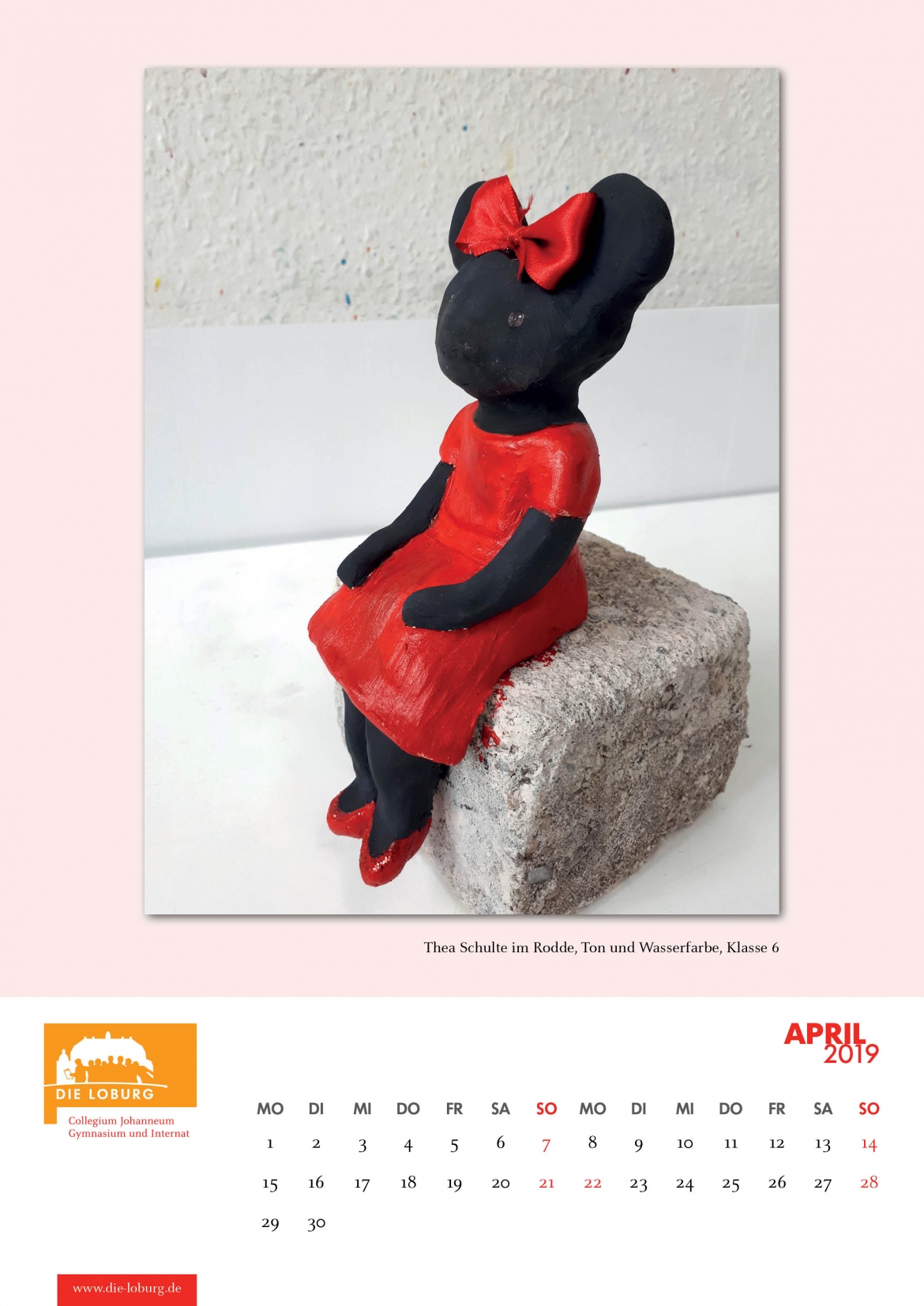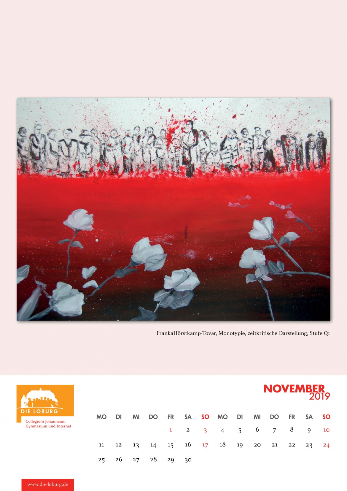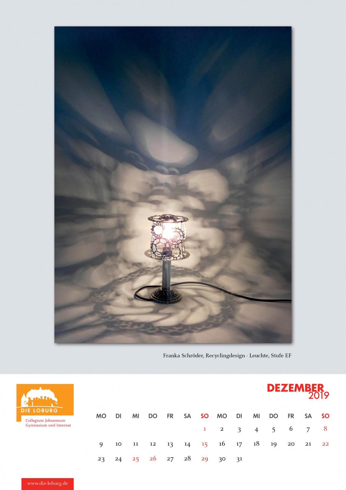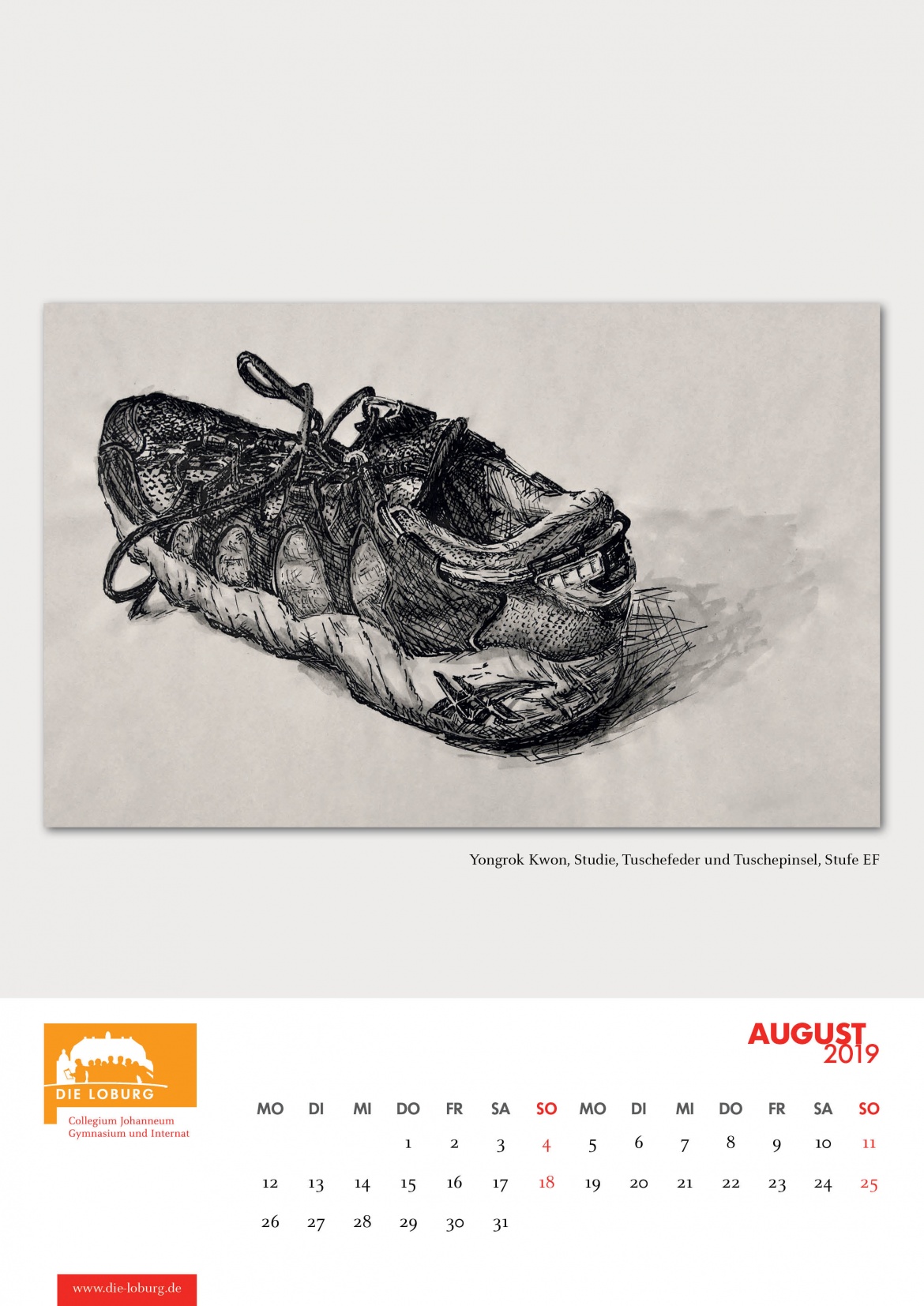 Die Fachschaft Kunst erstellt in jedem Jahr einen Kalender mit Schülerarbeiten aus dem Kunstunterricht. Hier werden aus unterschiedlichen Jahrgangsstufen ausgewählte Arbeiten gezeigt. Die Schüler zeigen ihre Werke, die in verschiedenen Techniken und mit diversen Materialien entstanden sind.
