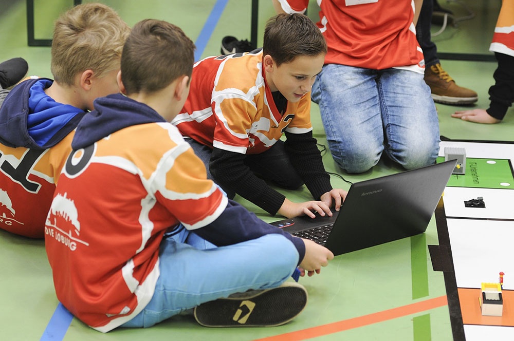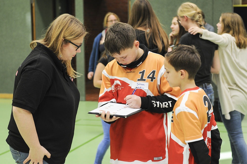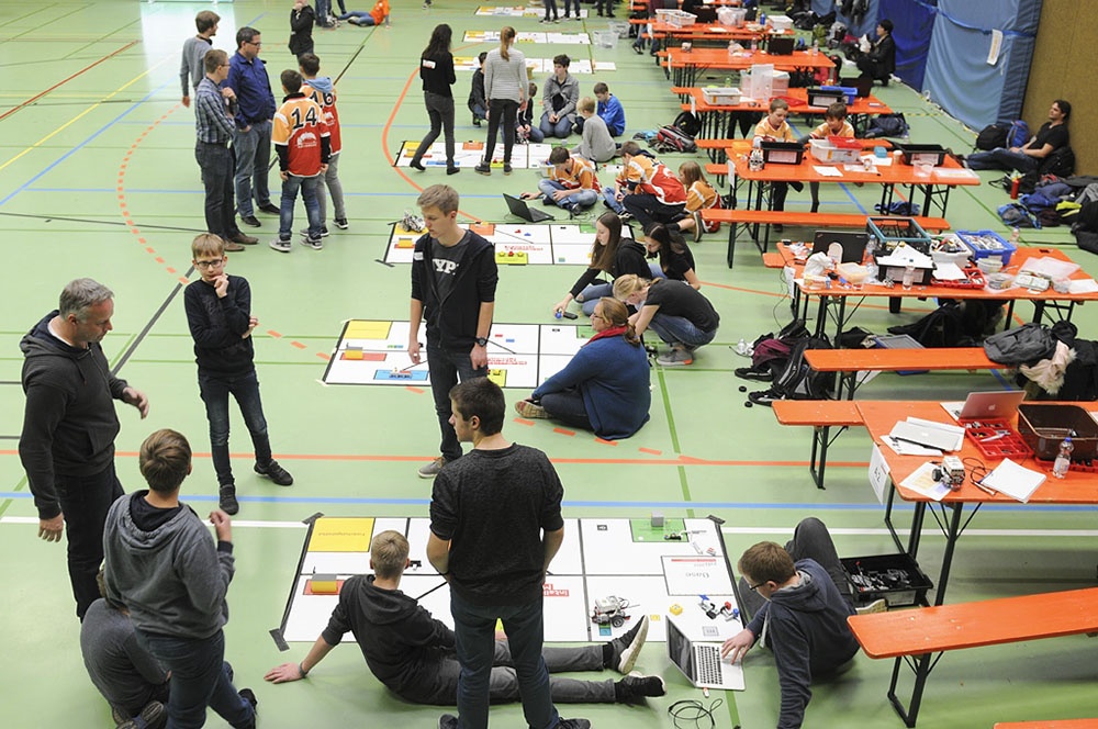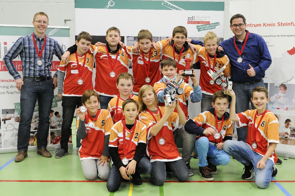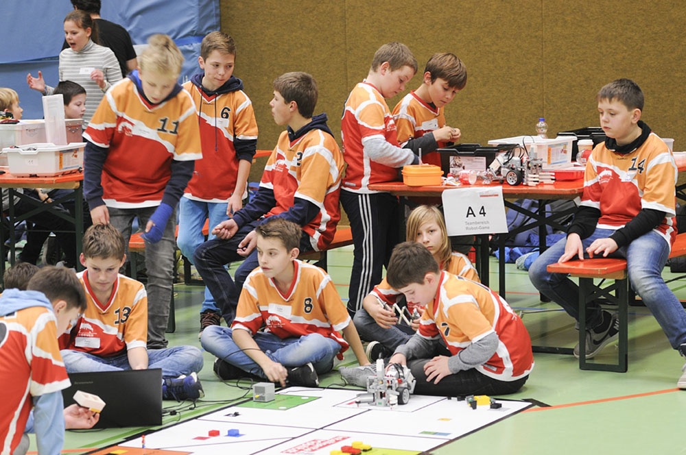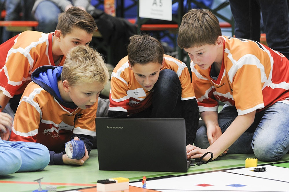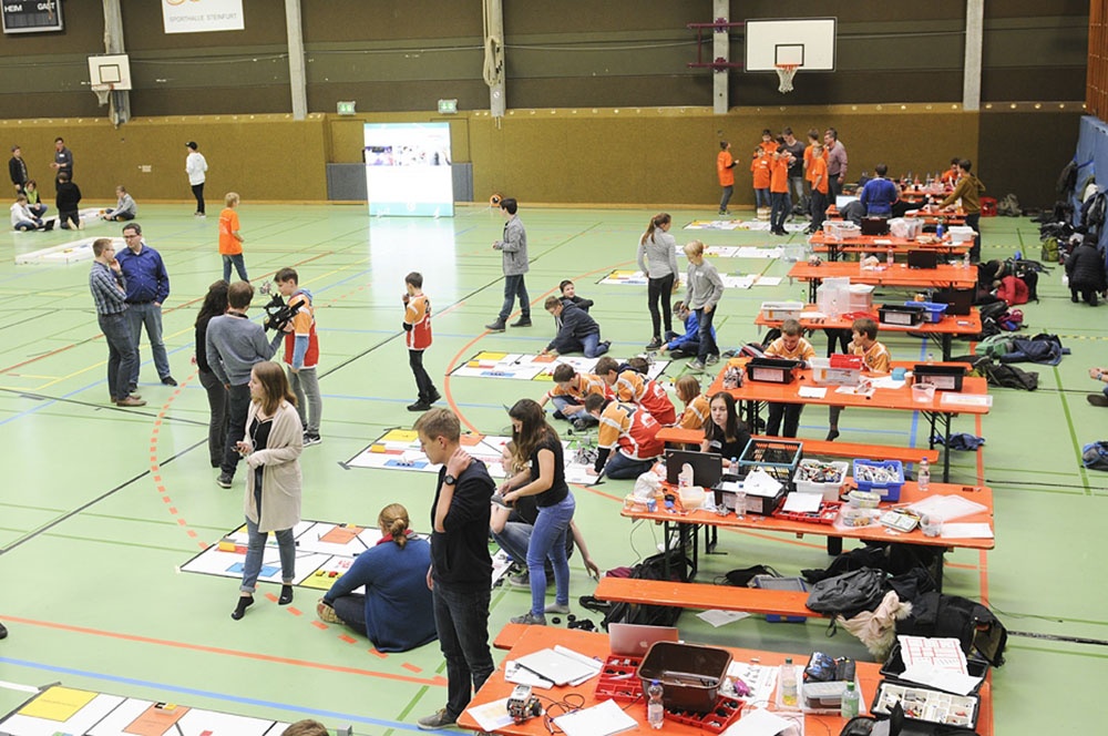 Am Freitag, den 17.11.2017 war es dann soweit – bei der regionalen Vorausscheidung sollte sich zeigen, wie gut die 12 Schüler der Klassen 6 bis 8 in der AG gearbeitet haben. Es begann mit einem Traumstart in Durchgang 1, an dessen Ende die Lobotics sogar auf Platz 1 lagen. Voller Eifer wurde die Stunde bis zum nächsten Lauf genutzt, um noch weitere Verbesserungen vorzunehmen. Das Ergebnis konnte gesteigert werden, jedoch fiel das Team auf Platz 2 zurück. Nach dem dritten Lauf war der Jubel groß, denn es stand fest: Wir sind im Halbfinale!
