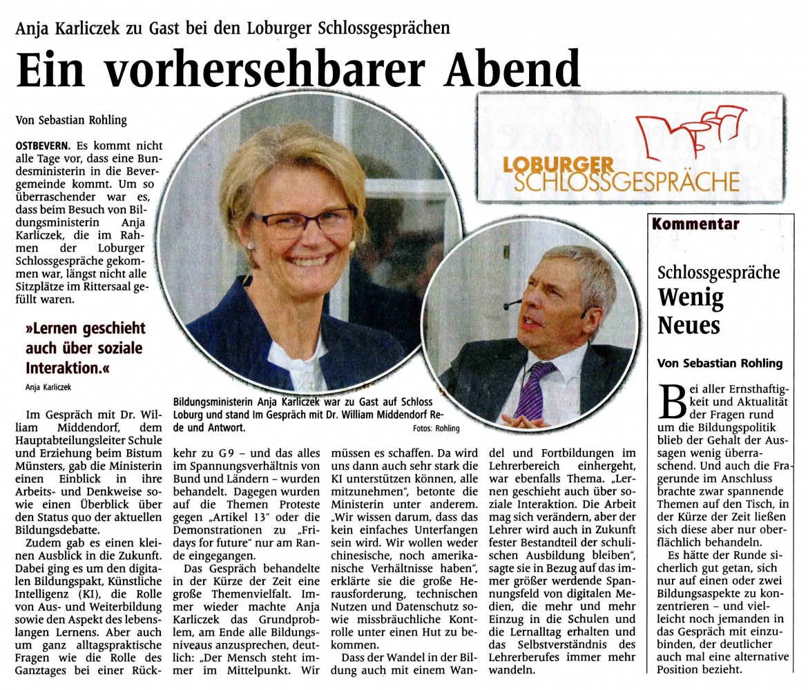 Anja Karliczek zu Gast bei den Loburger Schlossgesprächen