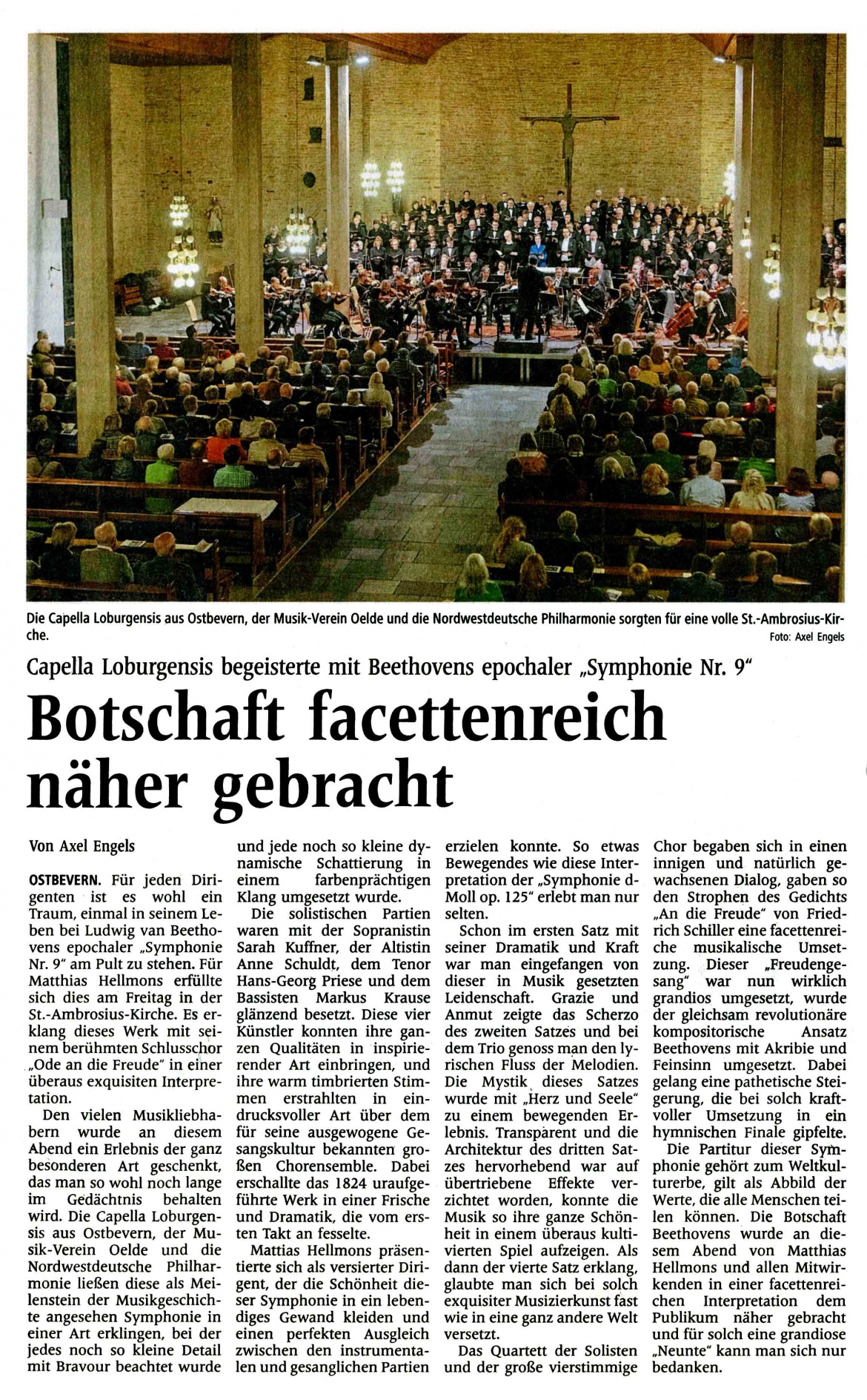 Capella Loburgensis begeisterte mit Beethovens epochaler "Symphonie Nr. 9"