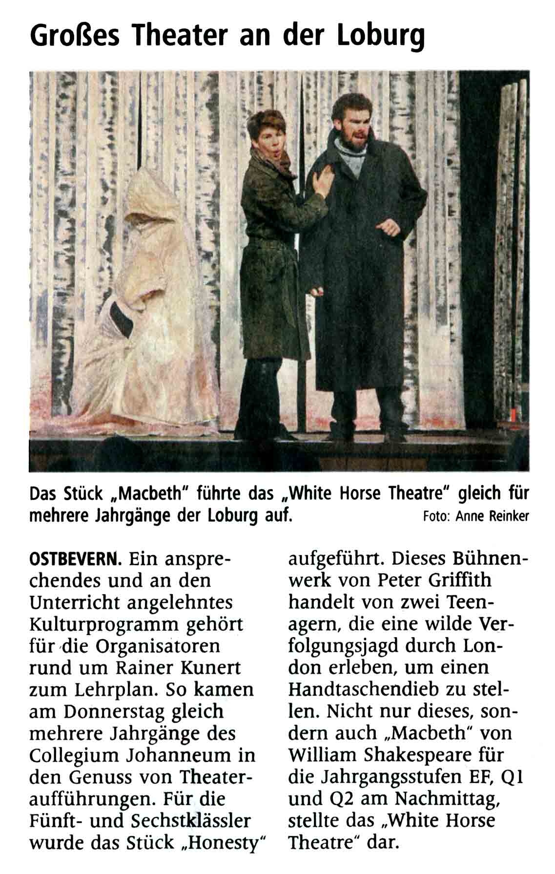 White Horse Theatre zeigt "Honesty" und "Macbeth"