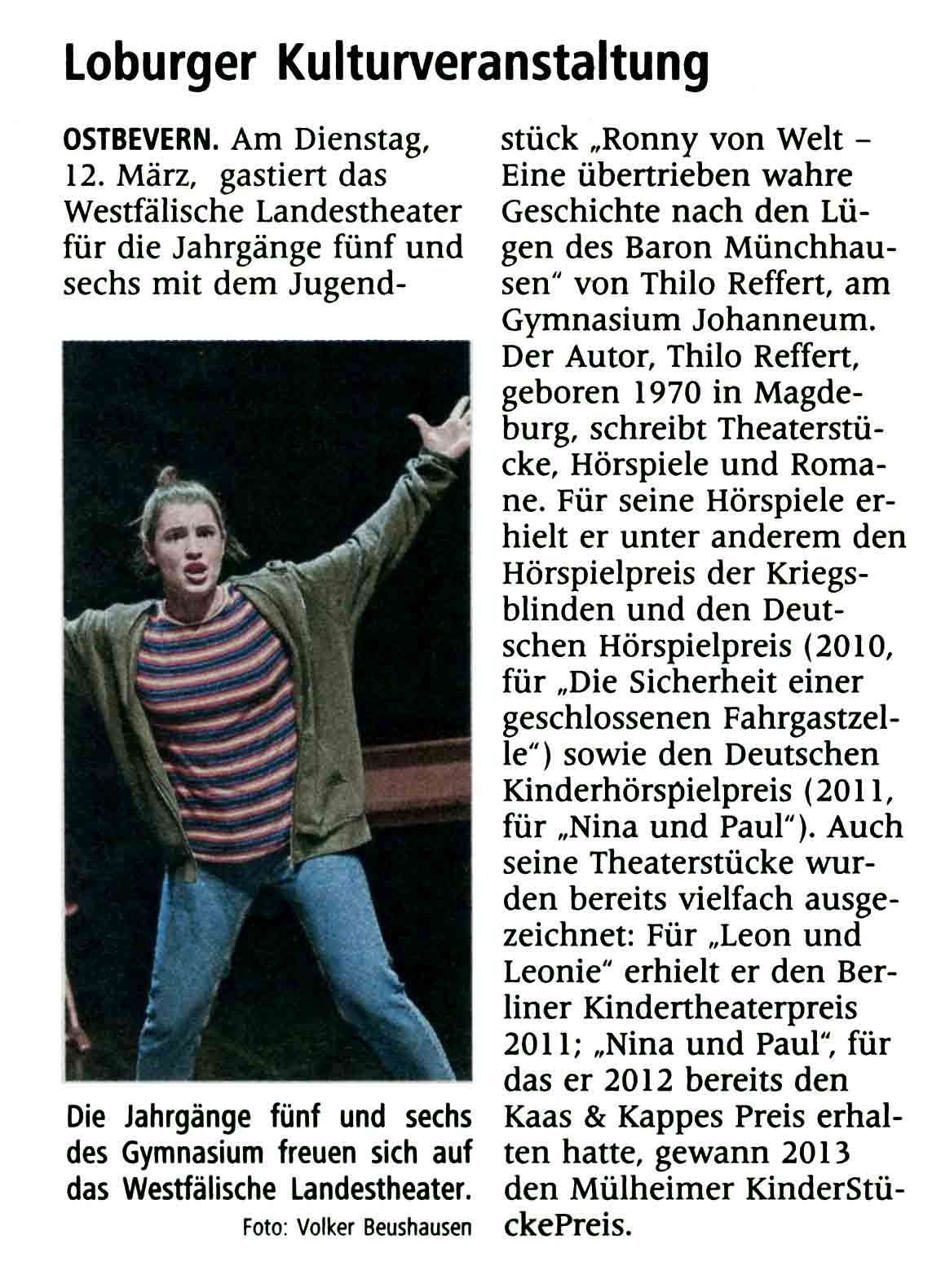Westfälisches Landestheater gastiert am Gymnasium Johanneum