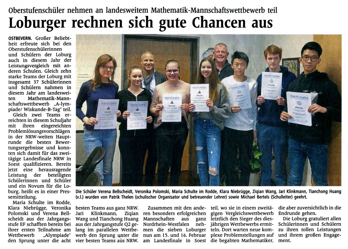 Oberstufenschüler nehmen an landesweitem Mathematik-Mannschaftswettbewerb teil