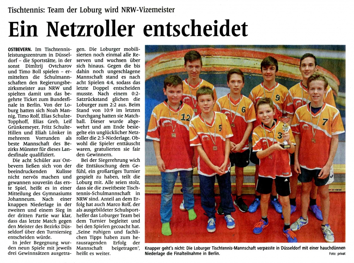 Tischtennis: Team der Loburg wird NRW-Vizemeister