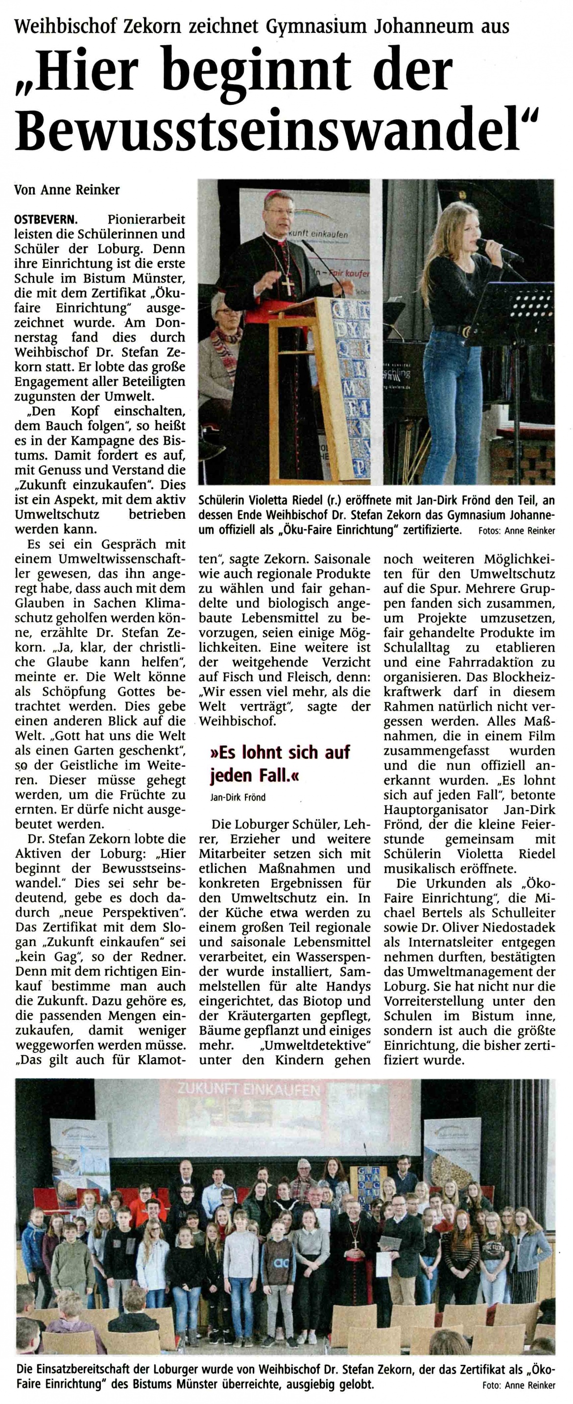 Weihbischof Zekorn zeichnet Gymnasium Johanneum aus