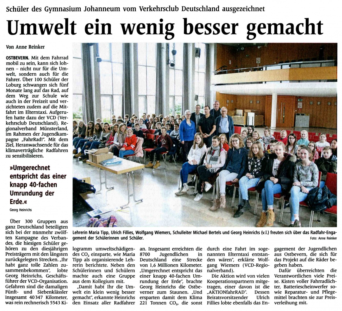 Schüler des Gymnasium Johanneum vom Verkehrsclub Deutschland ausgezeichnet