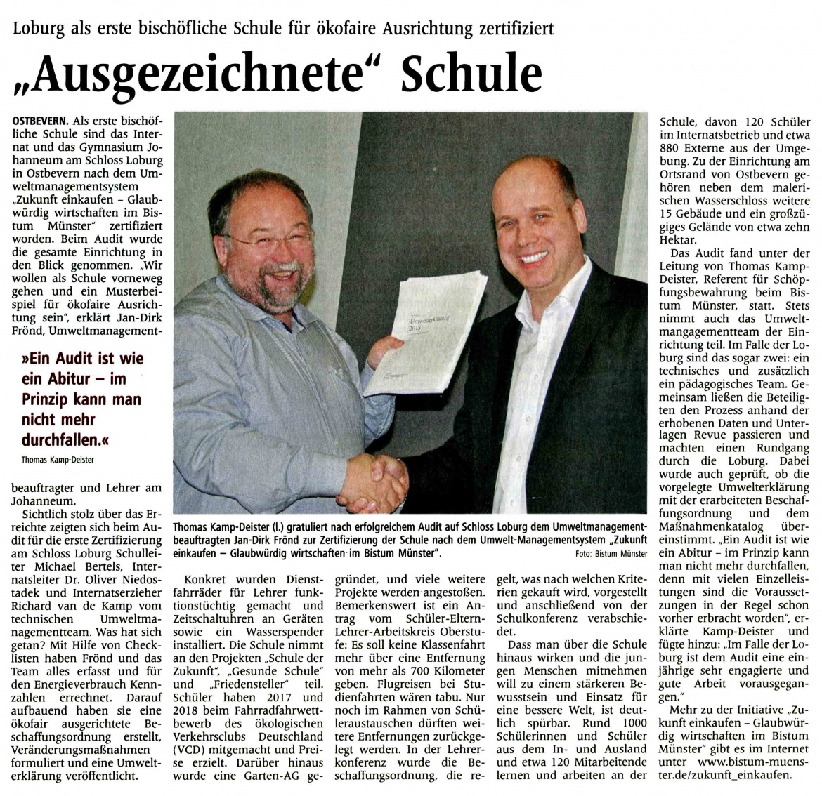 Loburg als erste bischöfliche Schule für ökofaire Ausrichtung zertifiziert