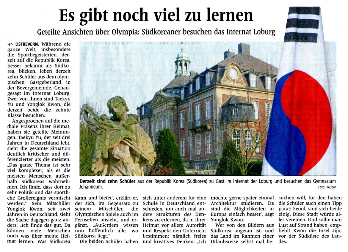 Geteilte Ansichten über Olympia: Südkoreaner besuchen das Internat Loburg
