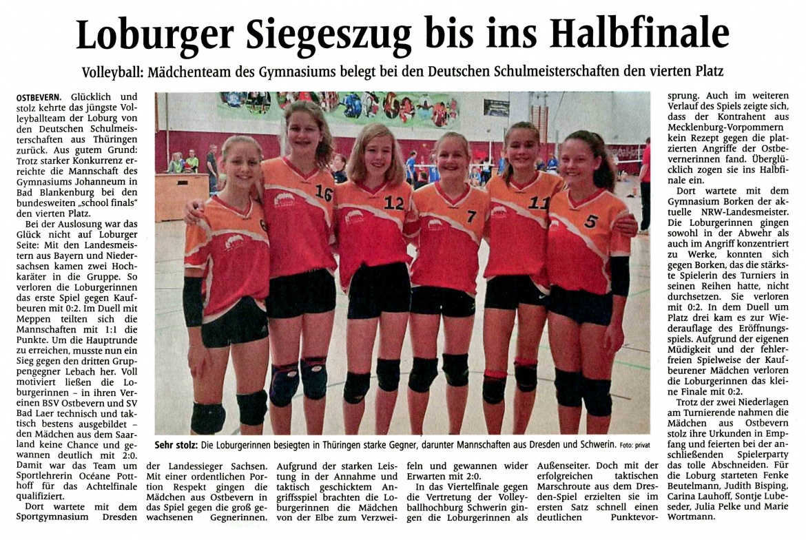 Volleyball: Mädchenteam des Gymnasiums belegt bei den Deutschen Schulmeisterschaften den vierten Platz