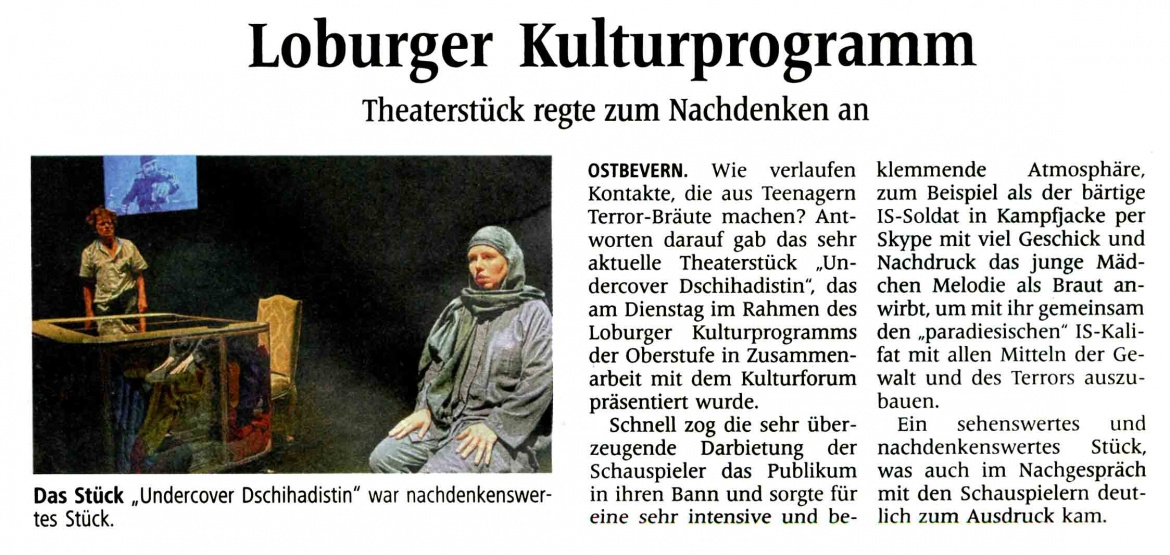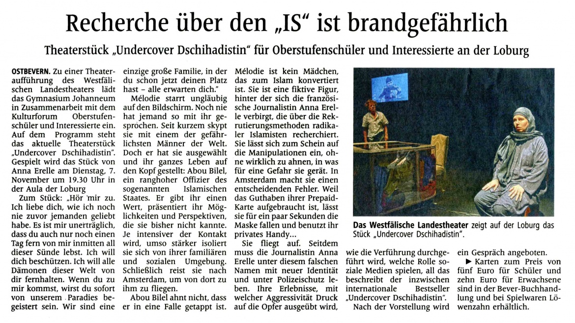 Theaterstück "Undercover Dschihadistin" für Oberstufenschüler und Interessierte an der Loburg