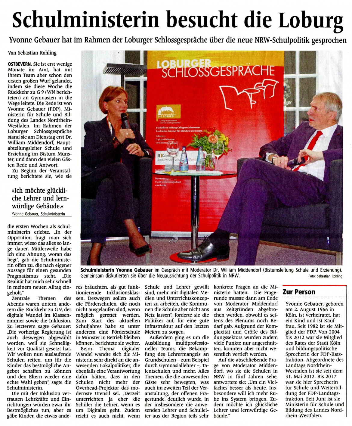 Yvonne Gebauer hat im Rahmen der Loburger Schlossgespräche über die neue NRW-Schulpolitik gesprochen