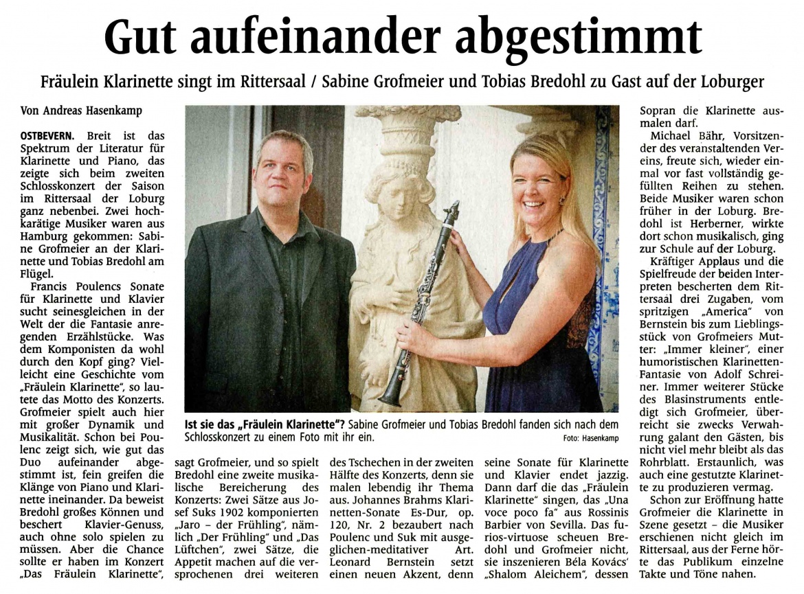 Fräulein Klarinette singt im Rittersaal / Sabine Grofmeier und Tobias Bredohl zu Gast auf der Loburg