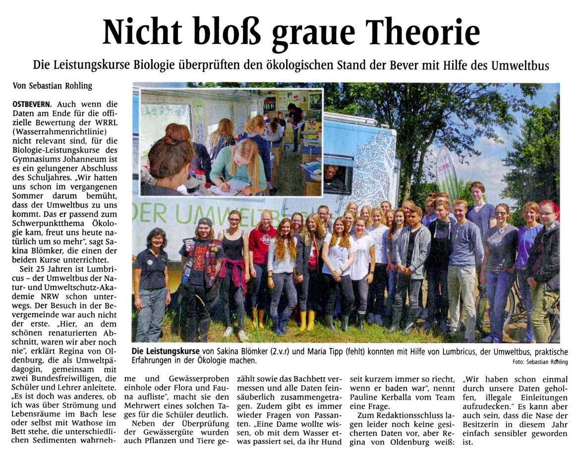 Die Leistungskurse Biologie überprüften den ökologischen Stand der Bever mit Hilfe des Umweltbus