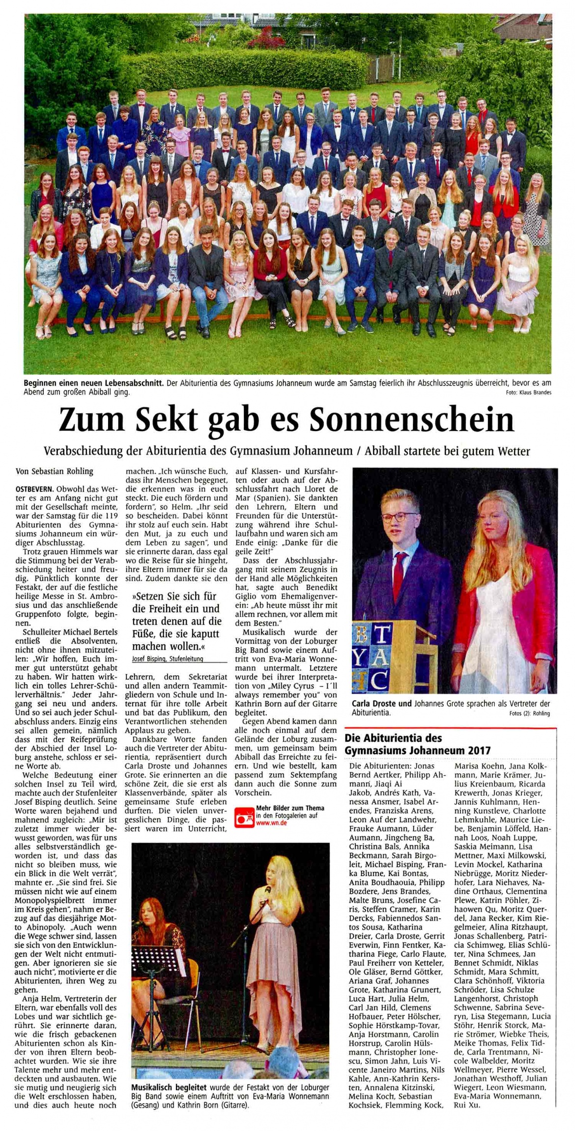 Verabschiedung der Abiturientia des Gymnasium Johanneum / Abiball startete bei gutem Wetter
