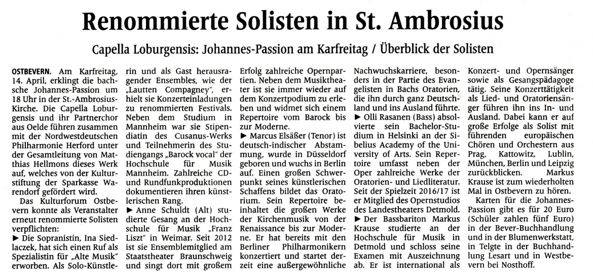 Capella Loburgensis: Johannes-Passion am Karfreitag / Überblick der Solisten