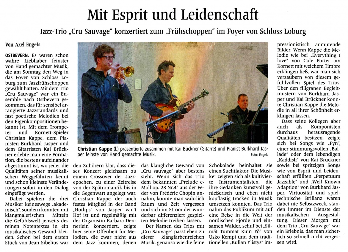 Jazz Trio "Cru Sauvage" konzertiert zum "Frühschoppen" im Foyer von Schloss Loburg