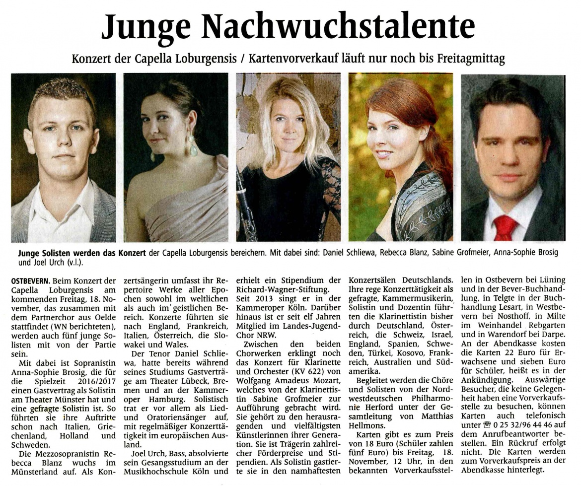 Konzert der Capella Loburgensis / Kartenvorverkauf läuft nur noch bis Freitagmittag