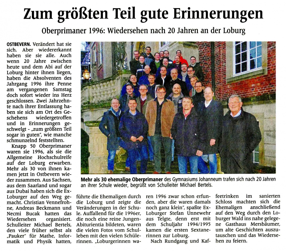 Oberprimaner 1996: Wiedersehen nach 20 Jahren an der Loburg