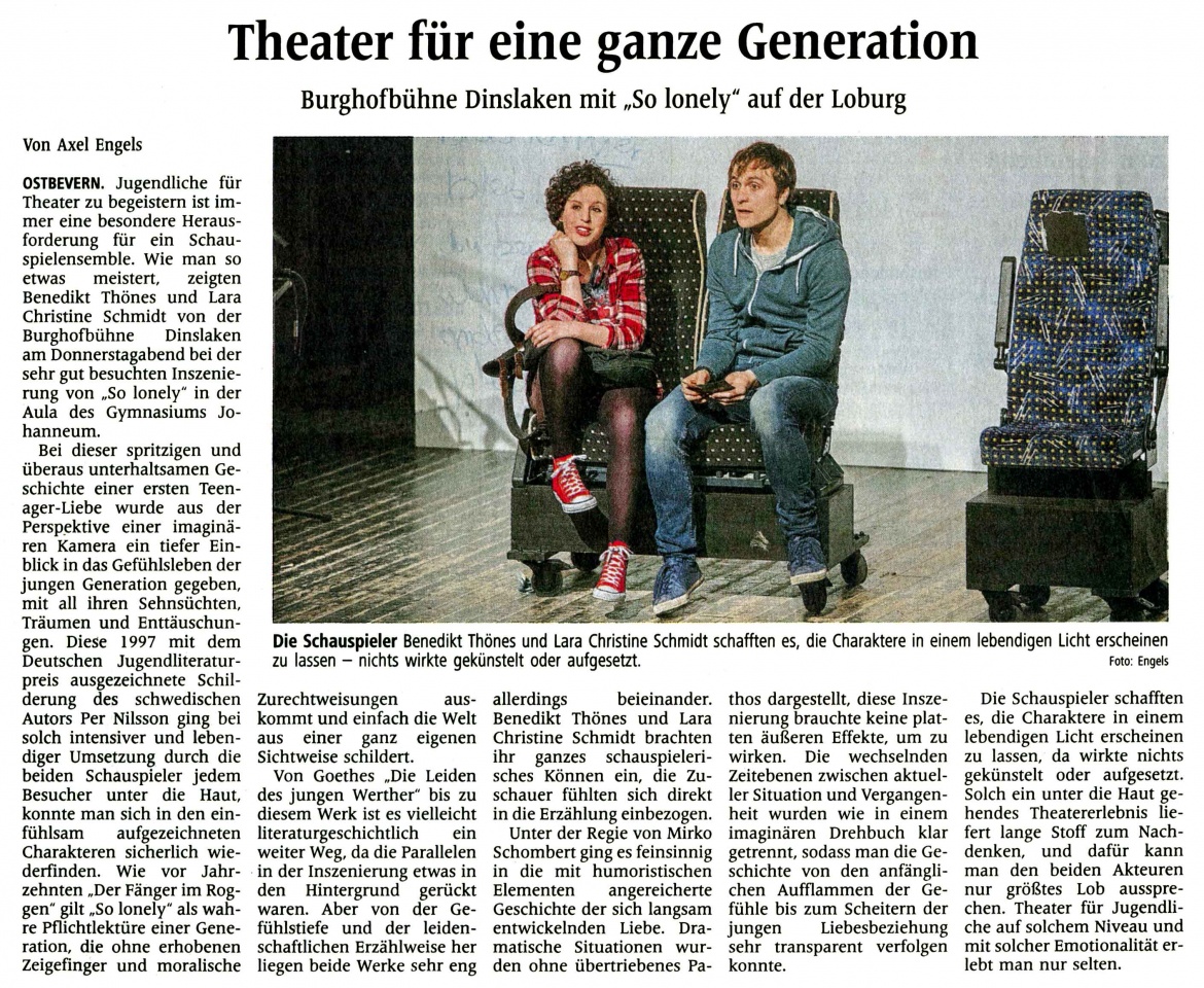 Burghofbühne Dinslaken mit "So lonely" auf der Loburg
