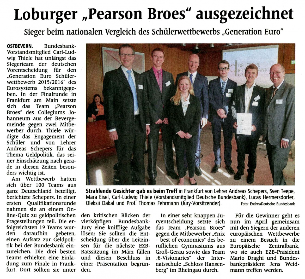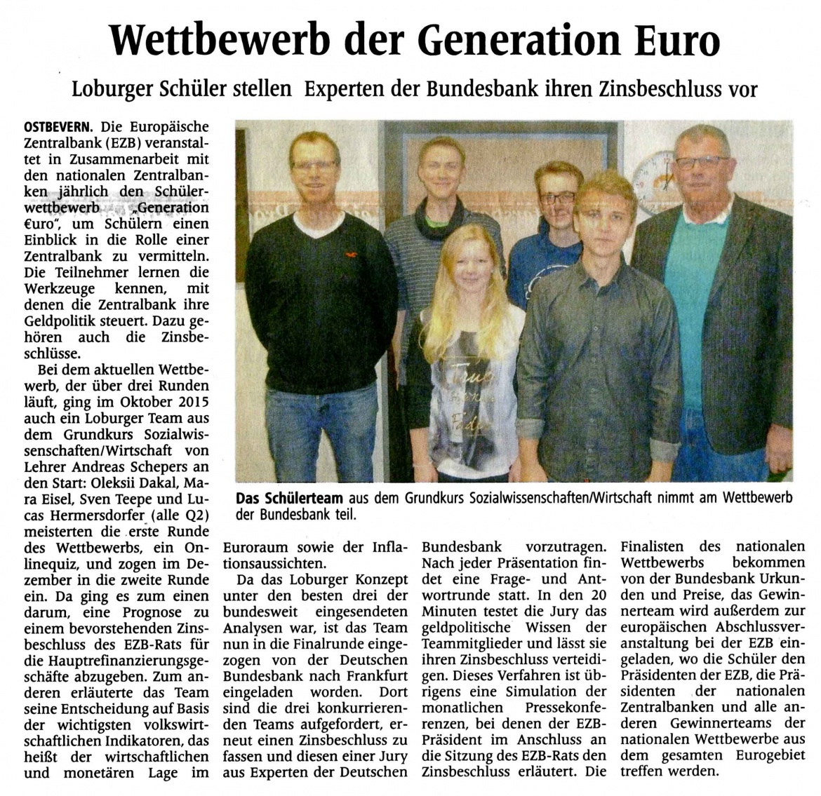 Sieger beim nationalen Vergleich des Schülerwettbewerbs "Generation Euro"