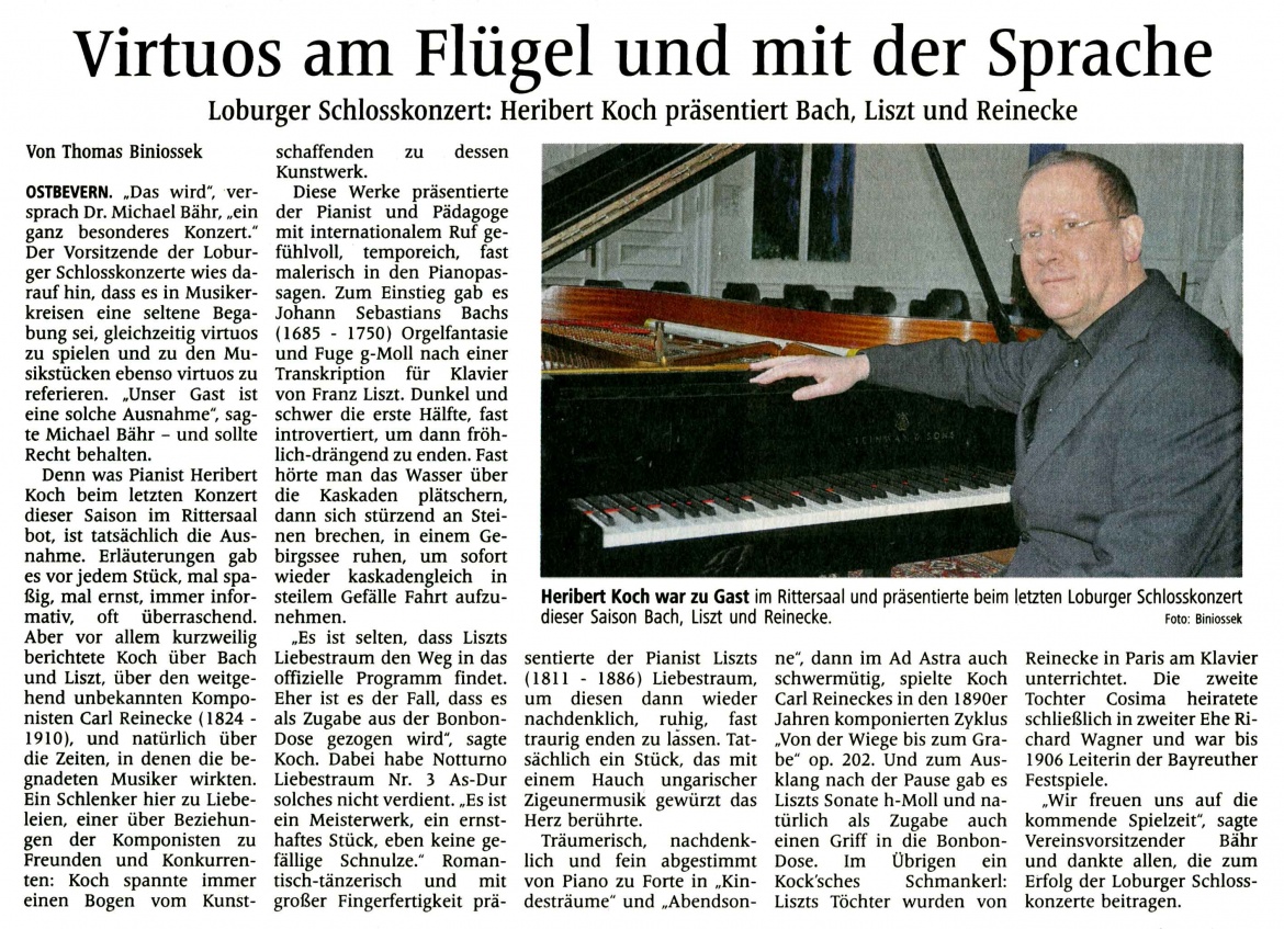 Loburger Schlosskonzert: Heribert Koch präsentiert Bach, Liszt und Reinecke