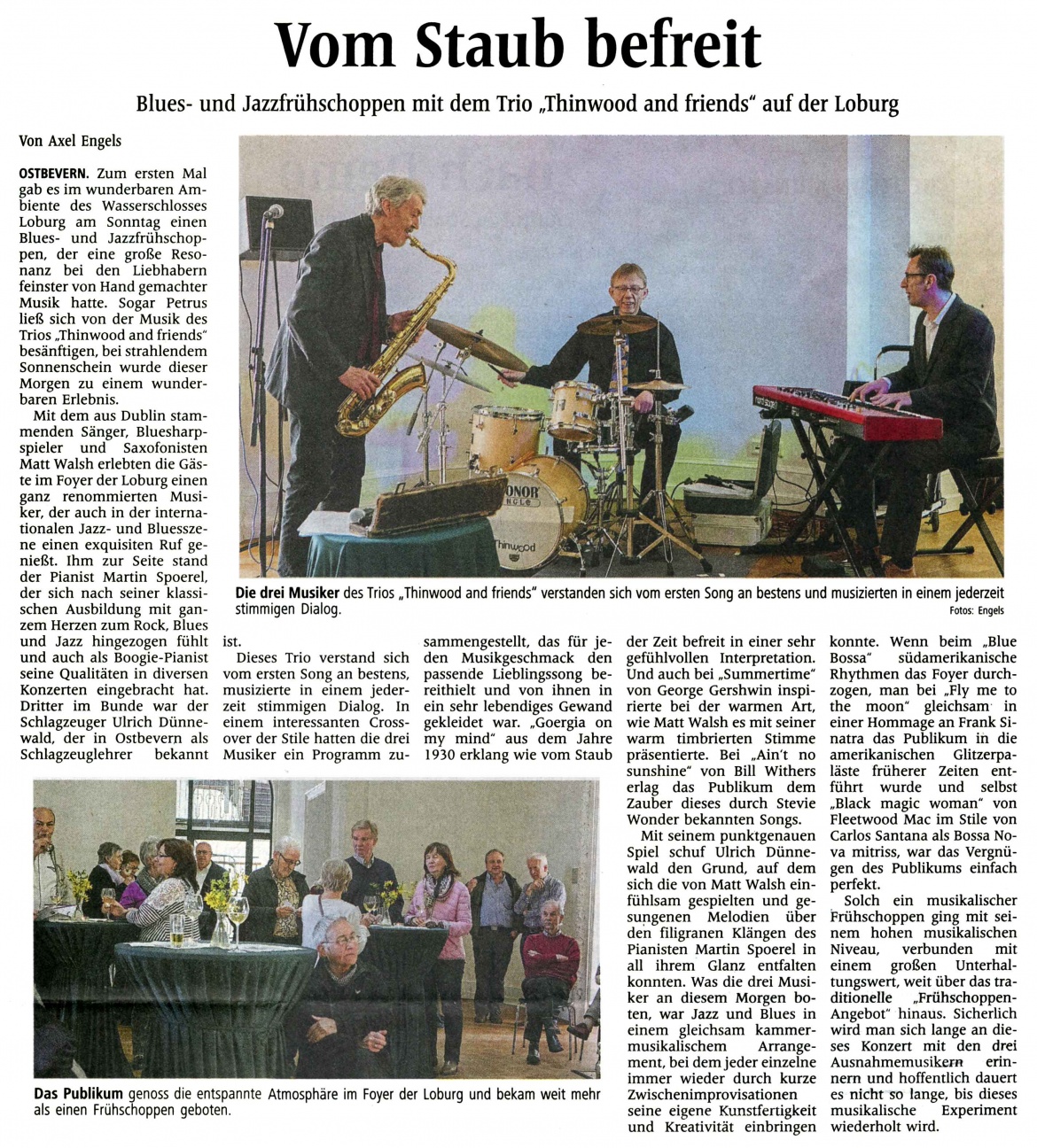 Blues- und Jazzfrühschoppen mit dem Trio "Thinwood and friends" auf der Loburg