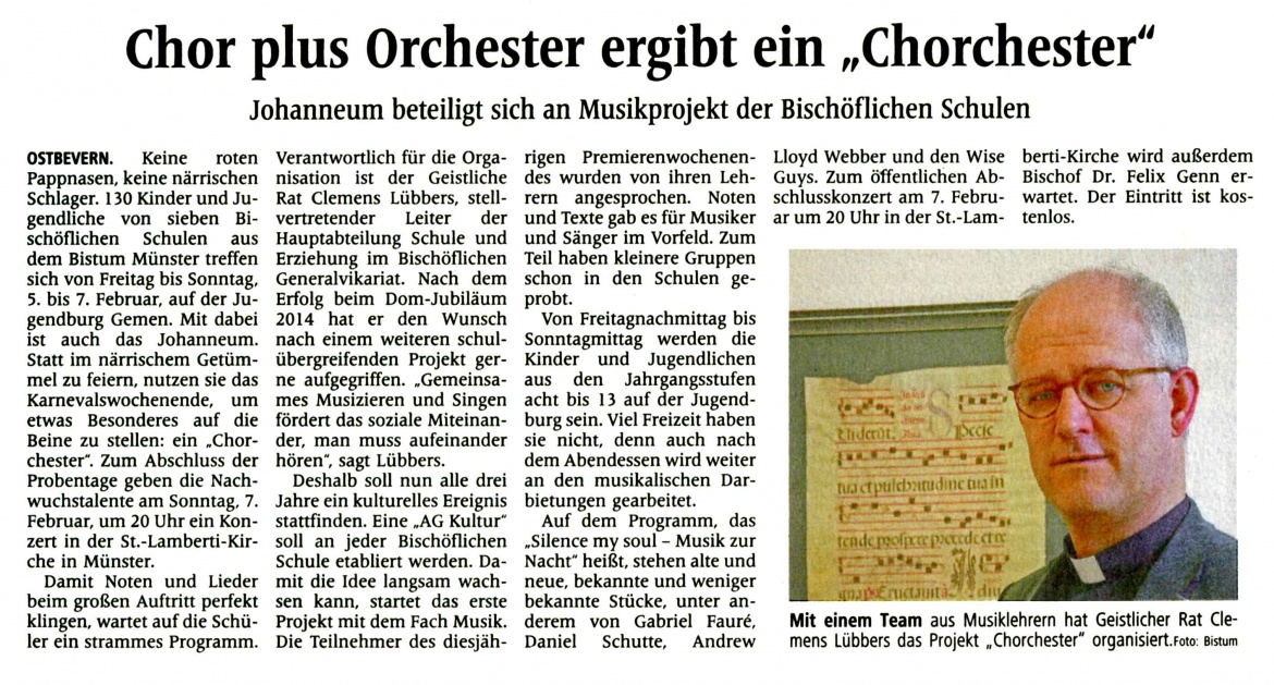 Johanneum beteiligt sich an Musikprojekt der Bischöflichen Schulen