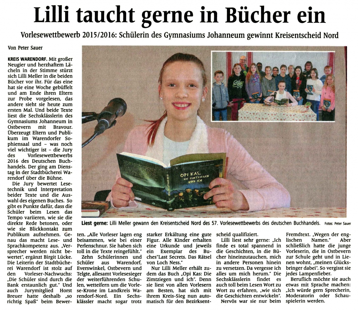 Vorlesewettbewerb: Schülerin des Gymnasium Johannneum gewinnt Kreisentscheid