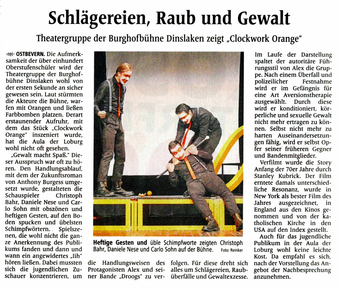 Theatergruppe der Burghofbühne Dinslaken zeigt "Clockwork Orange"