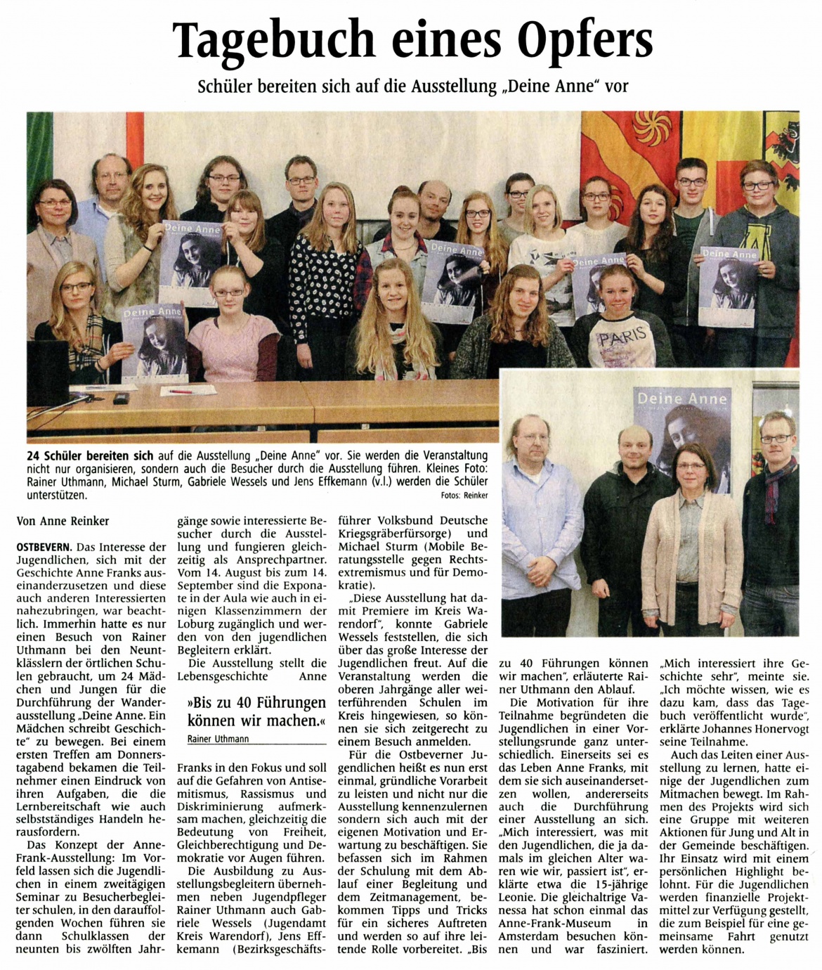 Schüler bereiten sich auf die Ausstellung "Deine Anne" vor