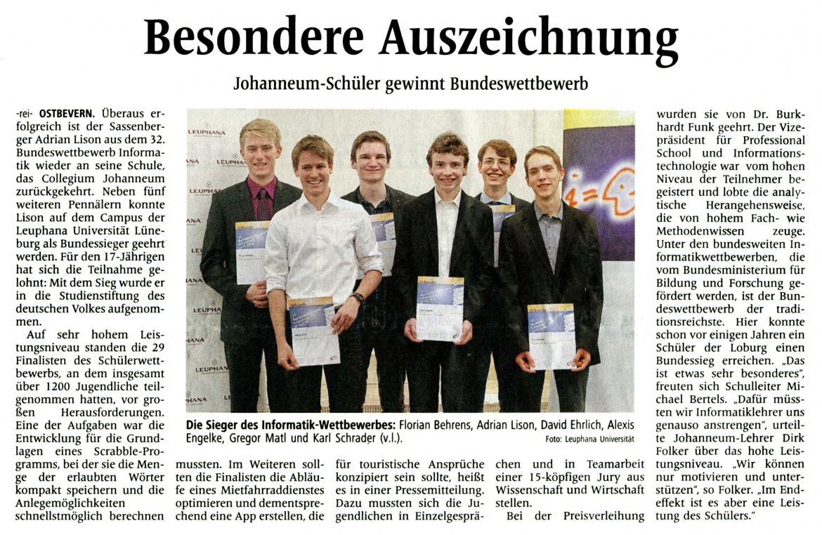 Johanneum-Schüler Adrian Lison gewinnt Bundeswettbewerb