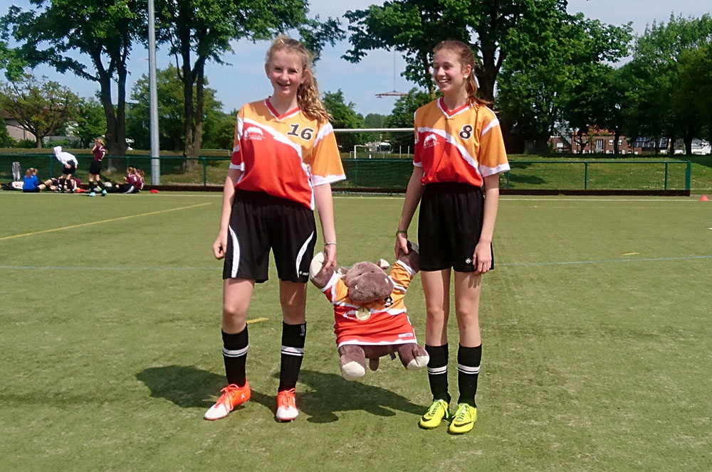 Nachdem unser Team im Vorrundenspiel im strömenden Regen das Gymnasium Nepomucenum aus Coesfeld mit 3:0 besiegt hatte, ging es auf der nächsten Ebene zu den Bezirksmeisterschaften nach Oelde ins Jahn-Stadion. Dort traf unsere Mannschaft mit ihrer Trainerin Teresa Dwerlkotte auf die Siegerinnen der übrigen Vorentscheide aus den Bezirken Münster, Gelsenkirchen und Recklinghausen. In der ersten Begegnung wurde unser Team von den starken Gegnern des Pascal-Gymnasiums aus Münster überrascht und konnte lediglich ein 1:3 verzeichnen. Das Anschlusstor erzielte Marie Hagedorn, die extra von den Exerzitien angereist war. Im zweiten Spiel schlug unsere Mannschaft die Gesamtschule Horst aus Gelsenkirchen mit 2:0 und erfüllte sich damit den lang ersehnten Traum, einmal gegen Schalke zu gewinnen. Im spannenden letzten Spiel gegen die Mannschaft aus Recklinghausen gab es trotz vieler Torchancen leider nur ein Unentschieden. Damit belegten die Loburgerinnen insgesamt den 3. Platz. Maskottchen Pferdinand von Pummel konnte zum Glück die Tränen trocknen und so bleibt der Vorsatz, im nächsten Jahr umso stärker zurückzukommen.