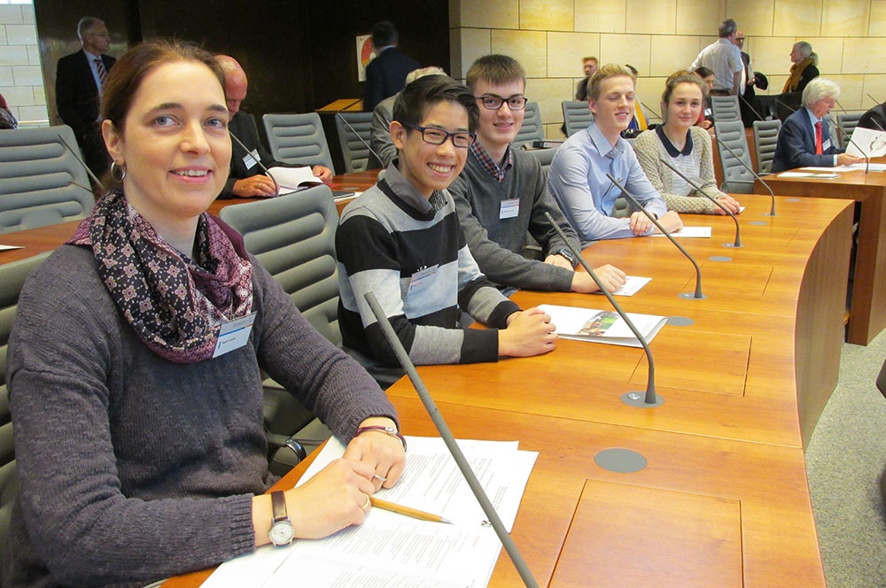 Die Anspannung und Vorfreude der vier Loburger SchülerInnen war deutlich zu spüren als es am vergangenen Mittwoch im Düsseldorfer Landtag plötzlich ganz still wurde und die WDR-Moderatorin Tanja Busse zur Eröffnung der 4. NRW-Nachhaltigkeitstagung ankündigt: „Und nun sehen Sie den Siegerfilm „Was soll´s?“ des diesjährigen Wettbewerbs ´We tube-unsere Projekte auf youtube´ des Gymnasiums Johanneum aus Ostbevern!“
