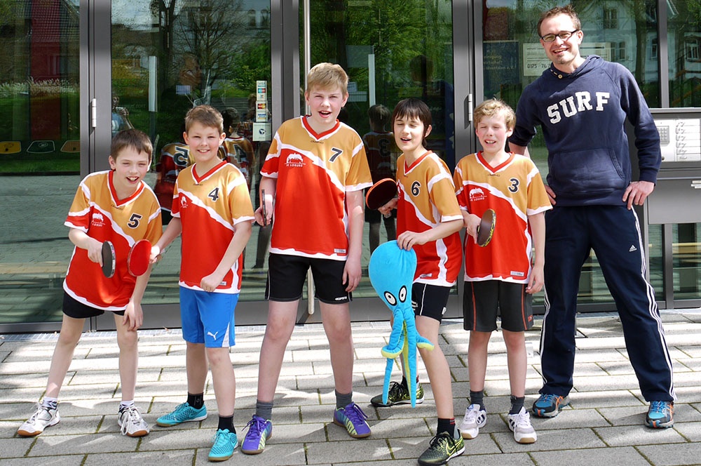 Nach dem deutlichen Finalsieg kannte der Jubel keine Grenzen. Stolz erhielten sie von den Organisatoren bei der Siegerehrung die Urkunden. Auch die Klasse 5c konnte sich freuen: Denn durch den Sieg ihrer Tischtennisspieler erhalten sie nun 200 Euro für die Klassenkasse und zwei Wochen Schulmilch gratis.