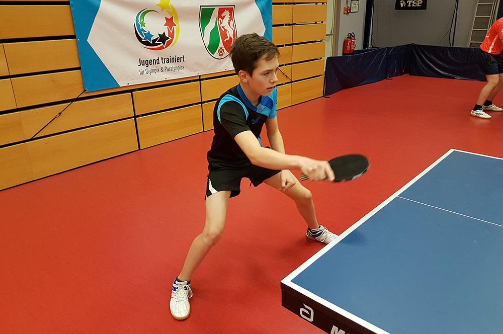 Es gab einen guten Grund, warum am 30. Januar um 6.40 Uhr (also aus Schülersicht mitten in der Nacht) eine Gruppe von Loburgern gespannt an der Schule auf einen Bus wartete. Ungefähr zwei Wochen vorher hatte das Tischtennisteam das Regierungsbezirksfinale gewonnen. Aus diesem Grund durften sie den Bezirk Münster beim Landesfinale für „Jugend trainiert für Olympia“ in Düsseldorf vertreten. Gespielt wurde im Tischtennisleistungszentrum, in dem sonst u.a. Timo Boll spielt. Es war eine beeindruckende Atmosphäre.