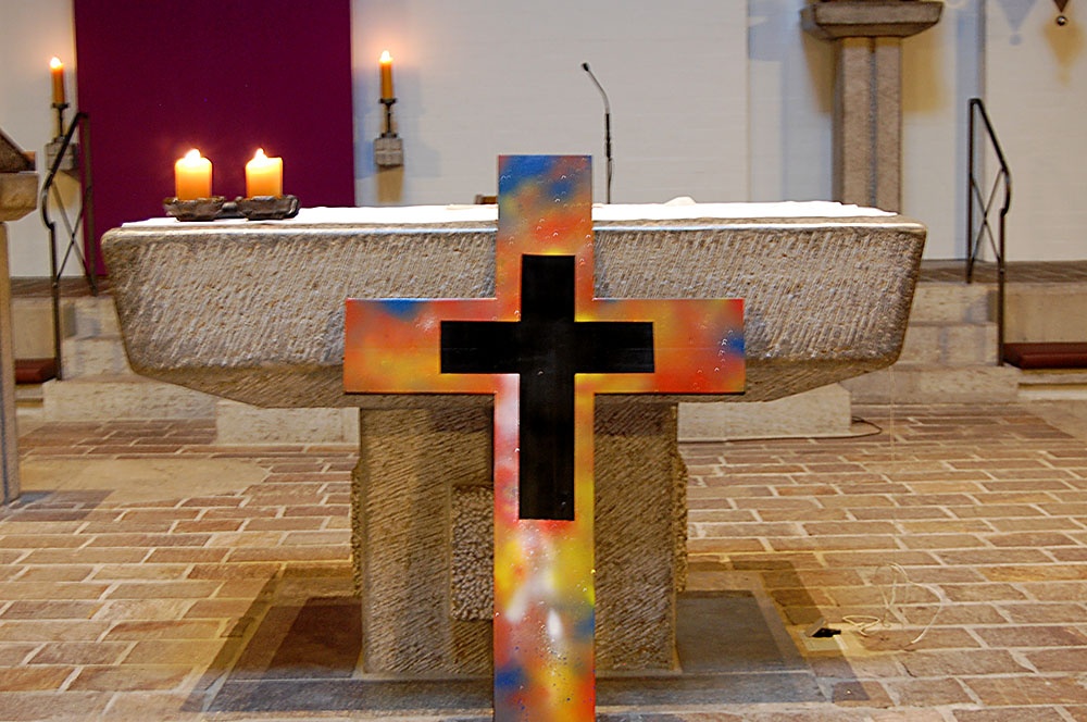 Grundlage des Kreuzes ist die schwarze Farbe als Zeichen des Todes.