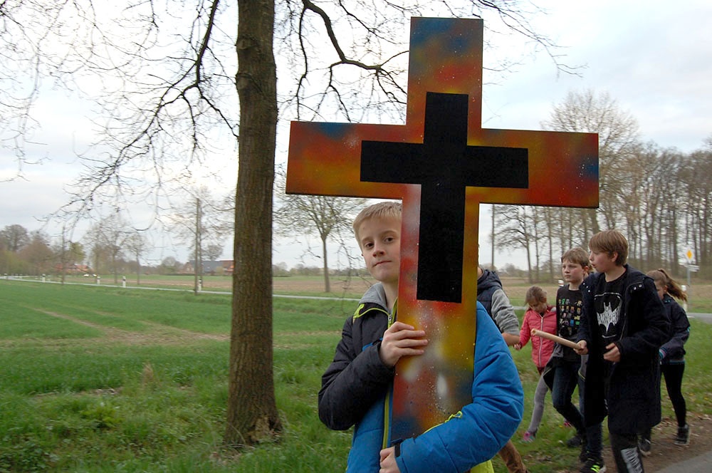Auch dieses Jahr nahmen die Loburger das Thema des Kreuzweges für ihre Wallfahrt auf. Bei recht kühlen Temperaturen, aber trockenem Wetter startete die Gruppe von ca. 350 Schülern, Eltern, Lehrern und Erziehern mit Bussen an der Loburg, um in der St. Bartholomäus-Kirche in Einen einen gemeinsamen Gottesdienst zu feiern.