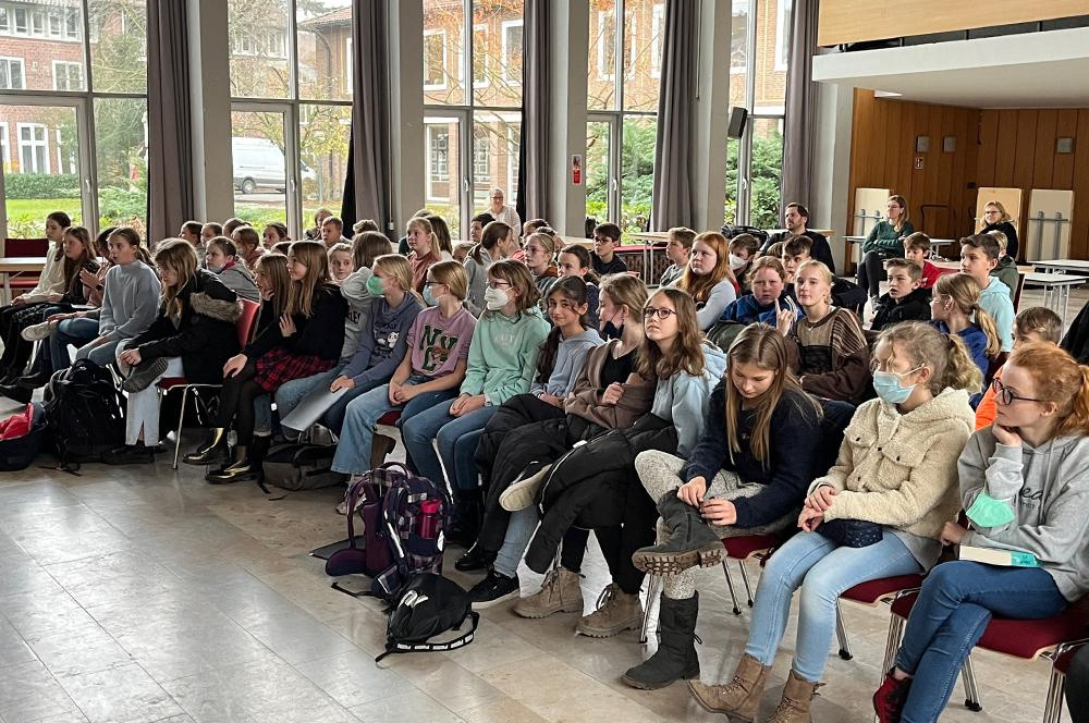 Als Klassensiegerinnen traten Ida Mendel (6a), Chiara Fernández Vergano (6b) und Maila Schwienheer (6c) vor ihren versammelten Mitschüler*innen in der Loburger Aula gegeneinander an.