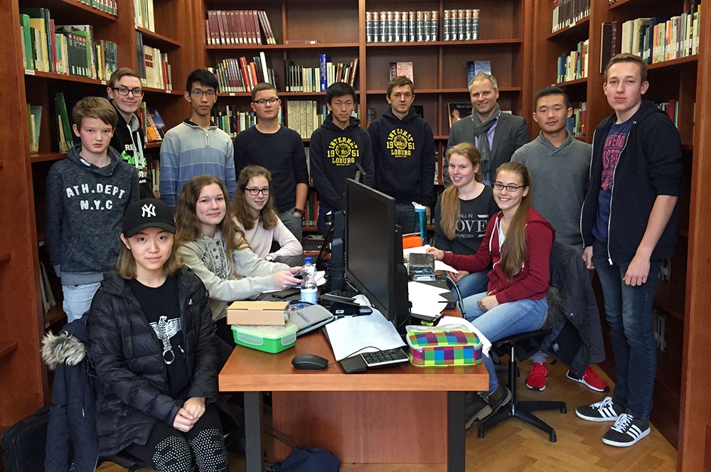 Photo: Patrik Thelen mit den Schülerinnen der Jahrgangsstufe EF, die in diesem Jahr erstmalig am Wettbewerb teilgenommen haben.“