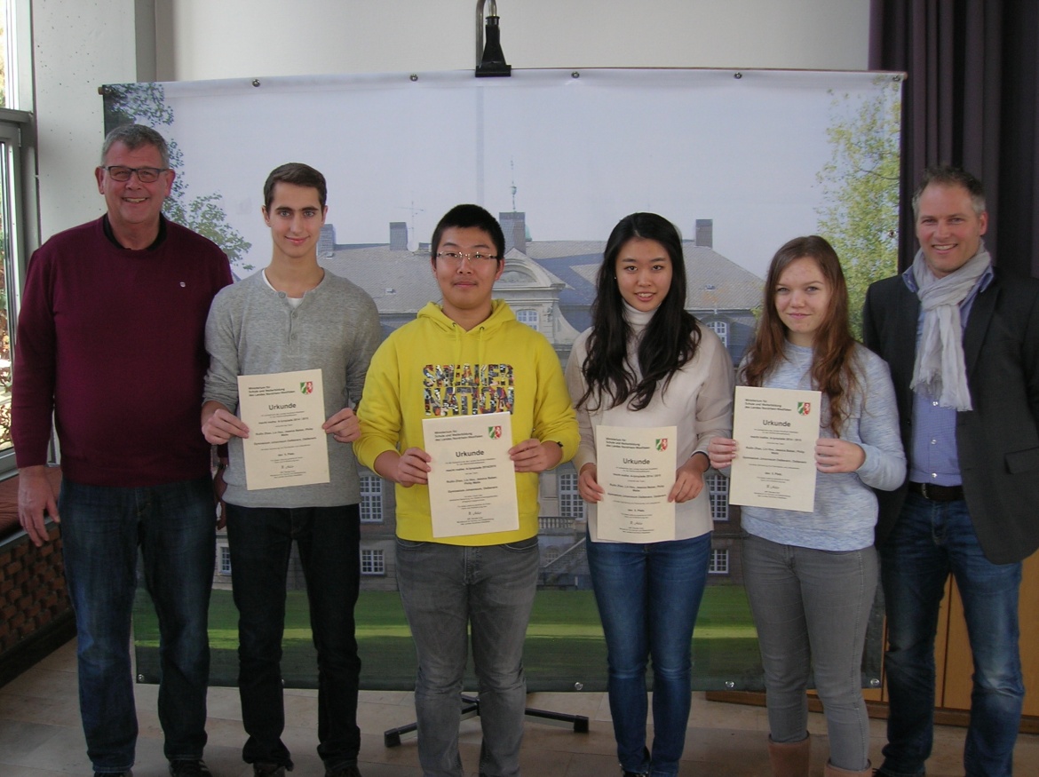 Eine überzeugende Leistung erbrachte dabei insbesondere das Team der Jahrgangsstufe Q1, bestehend aus Ruilin Zhao, Jessica Balzer, Lin Hou und Philip Matis. Das Team erzielte für ihren erarbeiteten Problemlösungsvorschlag in der Hauptrunde ein sehr gutes Bewertungsergebnis. Zusammen mit 7 anderen erfolgreichen Mannschaften aus ganz NRW haben unsere 4 Loburger dann am 06./07. Februar 2015 am Landesfinale in Soest teilgenommen, wo sie in einem spannenden zweitägigen Vergleichswettbewerb letztlich den hervorragenden 5.Platz belegten!