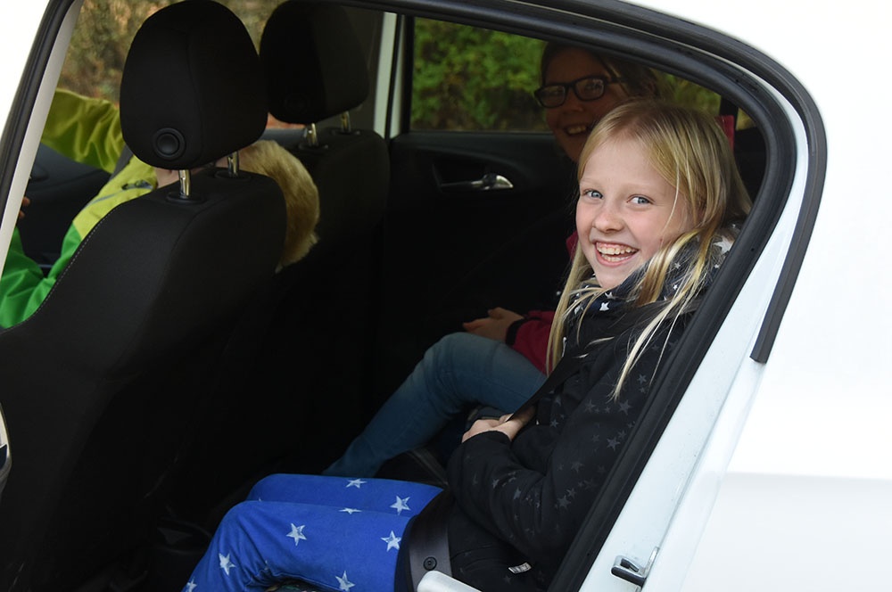 Krönender Höhepunkt war dann natürliche die Mitfahrt im ADAC-Aktions-Auto. Dort er“fuhren“ die Kinder bei einer Vollbremsung die lebensrettende Bedeutung der ordnungsgemäßen Sicherung (Gurte!) im Fahrzeug.